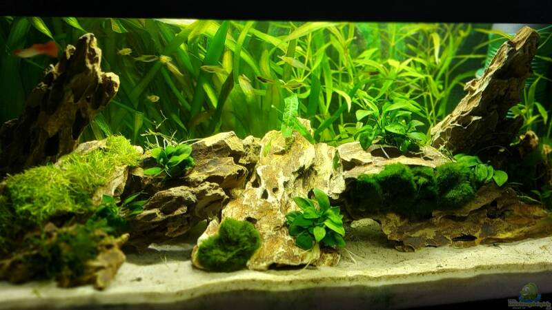 - Anunias nana vorsichtig mit dem Rhizom auf die Drachensteine aufgeklebt (mittig)
