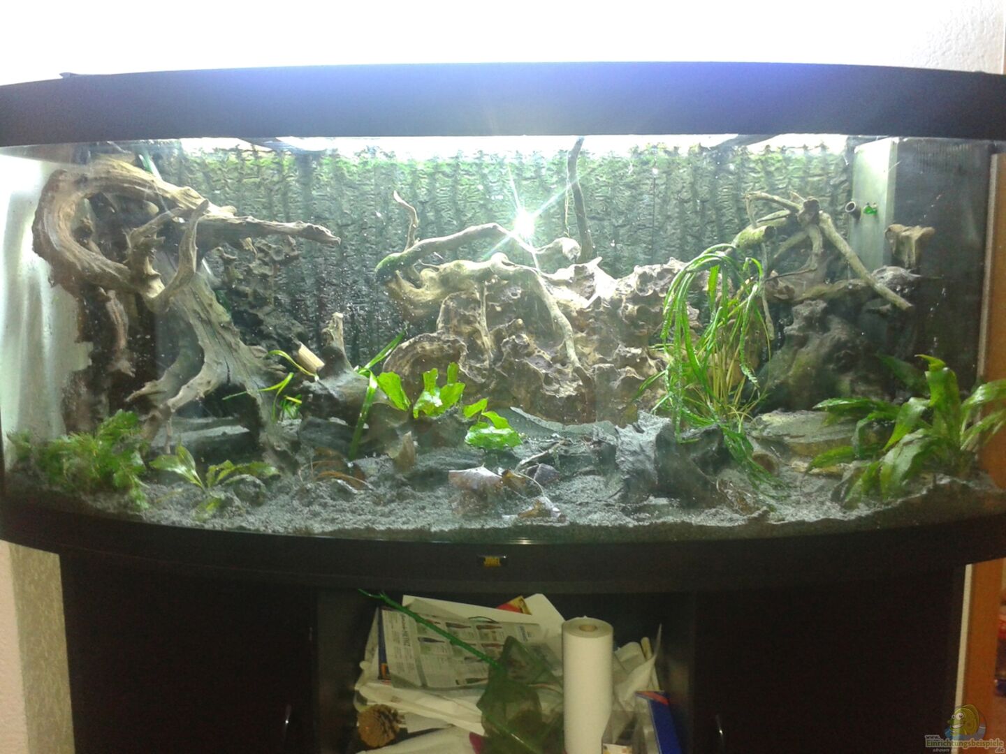 Letzte Woche hab ich 2 Wurzeln entfernt um etwas mehr Schwimmraum und Platz für die Pflanzen zu erhalten. Somit wirkt das Becken wieder ganz anders als vorher....