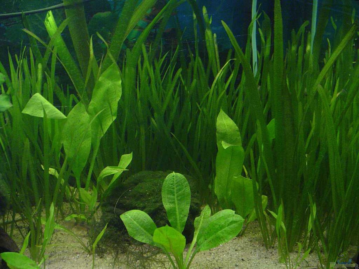 Mindestens 15-20 Tiere in Becken mit reichlich Pflanzen- wuchs und dunklem Bodengrund.