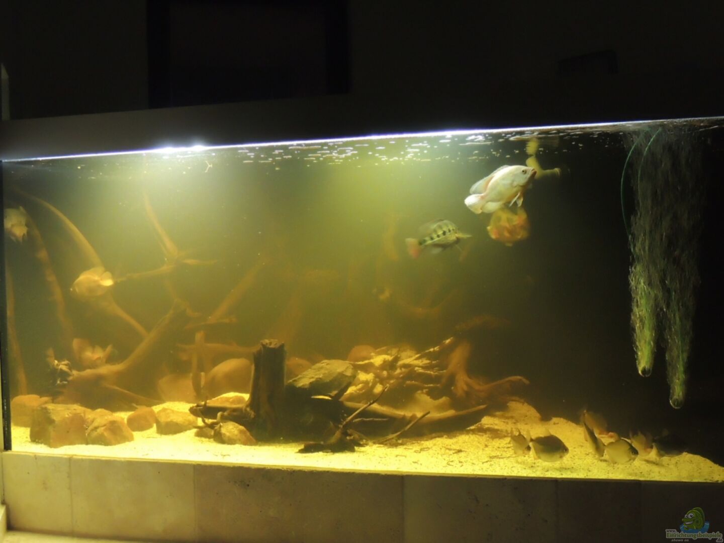 auch an dieser Stelle mal ein Hallo von mir, echte Traumma?e . Beim Filterbecken und der Förderpumpengrö?e gebe ich Sacha schon recht, diese erscheinen mir auch etwas klein. Schön wären hier noch einige Infos mehr, wie zum Beispiel Wasserwerte, Beleuchtungszeiten, detailliertere Aufschlüsselung des Futters. An einer Stelle muss ich dich allerdings enttäuschen, auf Grund deiner Besatzzusammensetzung von Südamerikanern, Mittelamerikanern und Asiaten ist es `nur` ein Gesellschaftsaquarium, kein Südamerika ;-)). Auch beim Besatz solltest du noch nachliefern, zum Beispiel stehen deine Haiwelse (Pangasius hypophthalmus) nicht mit auf der Liste, wenn noch etwas fehlt schreibe die doch bitte auch mit dazu. Ansonsten ein tolles Gro?aquarium mit einer schönen Einrichtung, Hoffe die Pflanzenfresser machen deiner Bepflanzung nicht so schnell den Gar aus ;-)). Eine Erläuterung der Bepflanzung wäre auch noch schön, wenn möglich :-)).