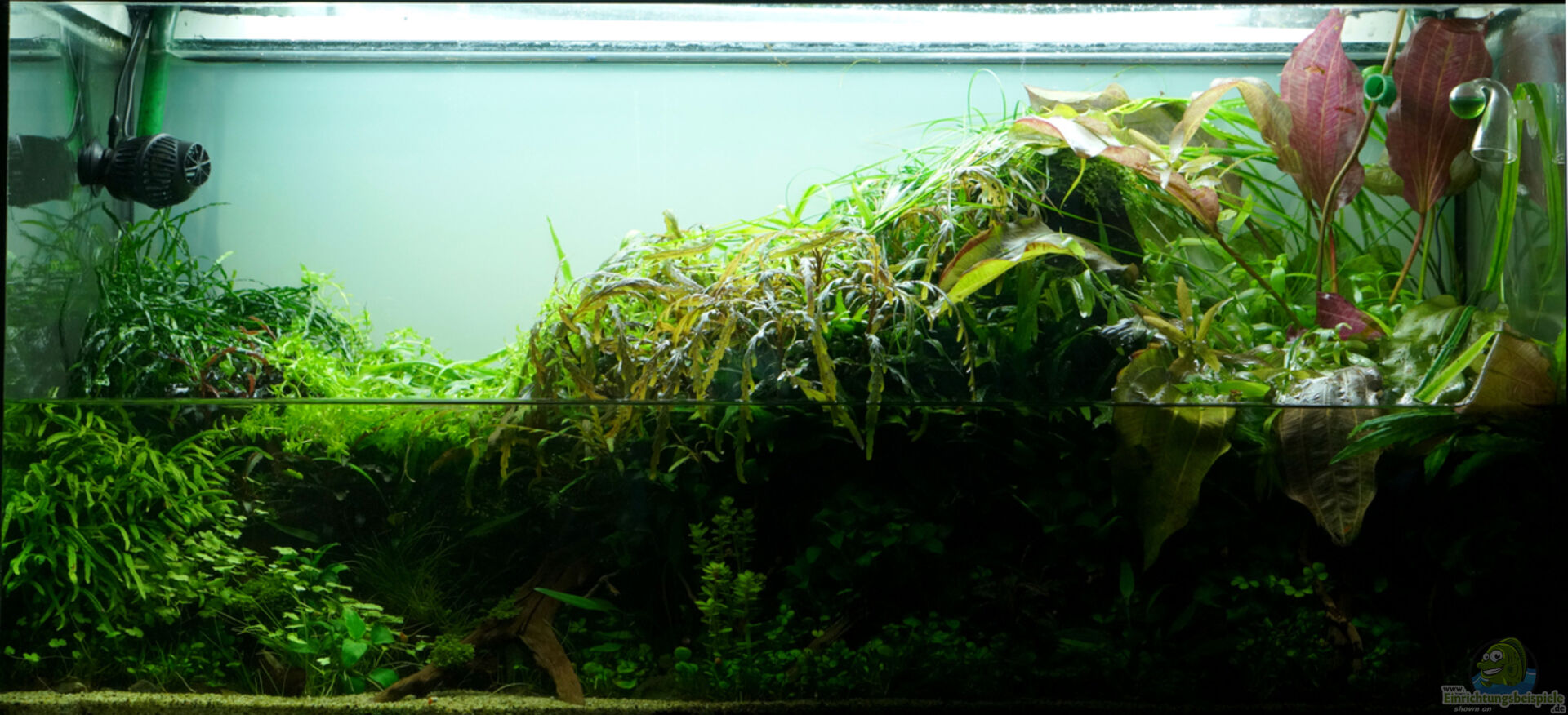 Bis jetzt läuft es bis auf ein paar Staubalgen prima. Nachdem ich wohl etwas zu viel Eisenvolldünger verwendet habe, gab es einige Pinselalgen, aber das ist wieder im Griff. Pflanzen wachsen prima.