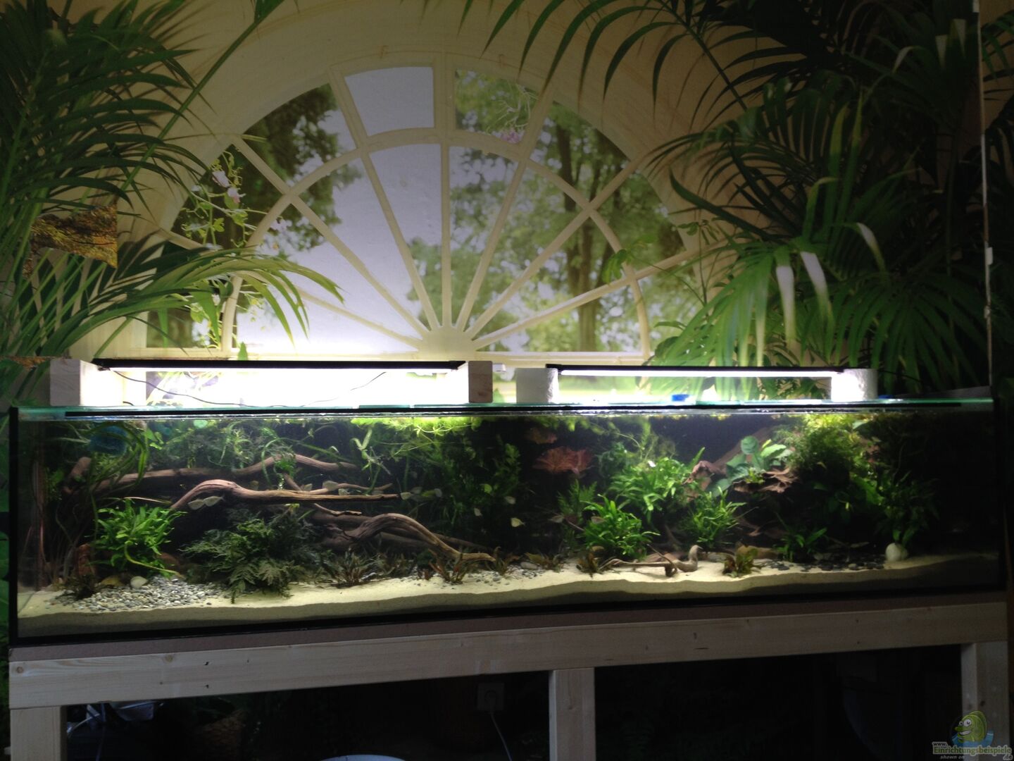 Da in diesem Zimmer auch Vögel frei fliegen, und über dem Becken Pflanzen hängen, ziehe ich bei meiner Abwesenheit einen Store vor, der die Tiere daran hindert über das AQ zu gelangen.