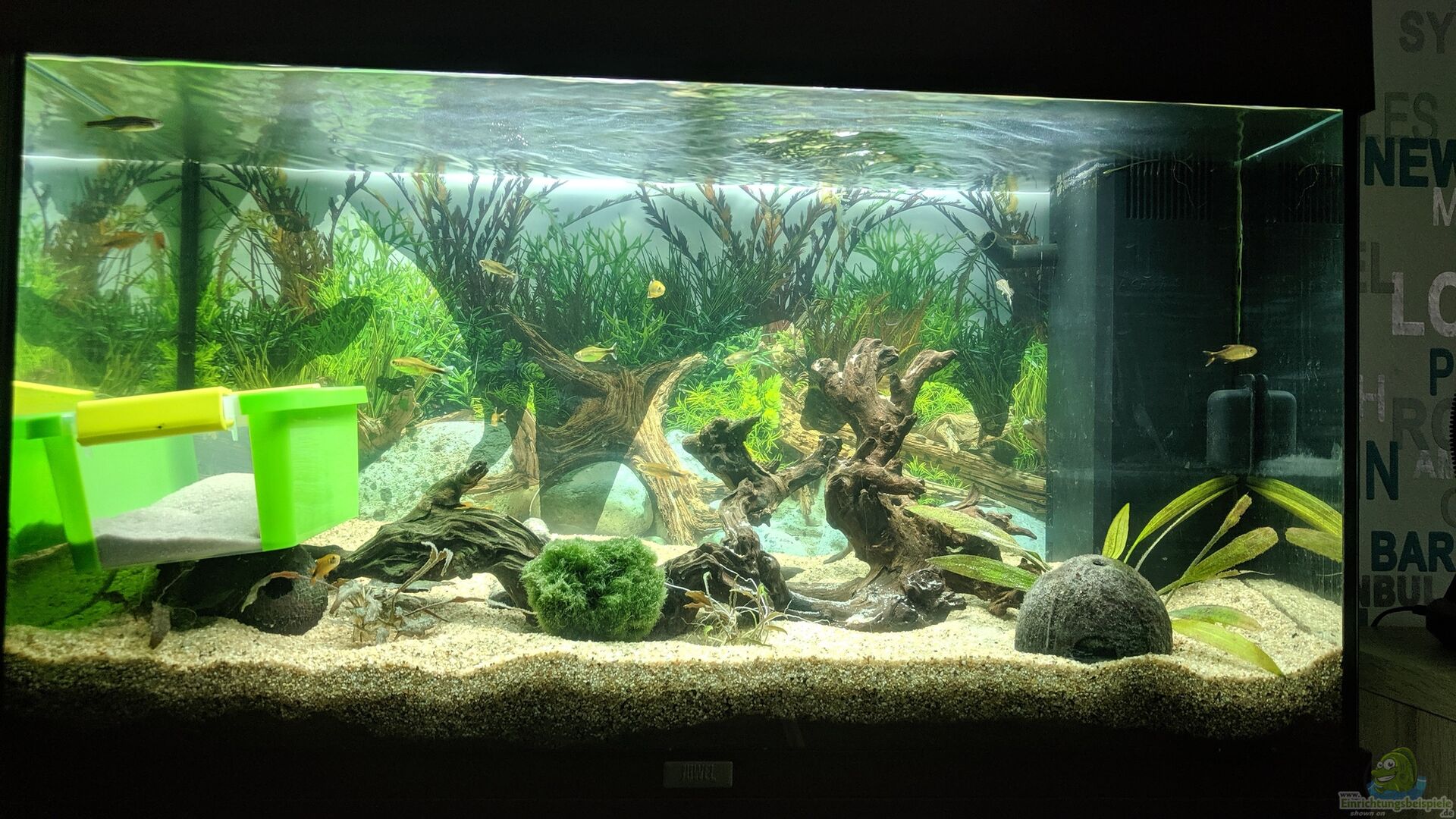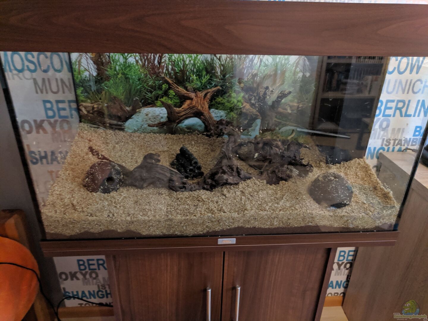 Nun habe ich mich auch endlich entschieden, ein Profil auf einrichtungsbeispiele mir anzulegen, da ich sehr viel Inspiration auf der Seite fand. Gestern musste ich auf dieses Aquarium umsteigen, ein Juwel Rio 125, dass einige Zeit im Keller stand. Schön geputzt und mit neuer Technik, hab ich es in Betrieb genommen. Eingerichtet habe ich bis jetzt eine Wurzel, zwei Kokosnusshöhlen sowie eine Garnelenpyramide. Bepflanzt ist bis jetzt nur eine gro??e Mooskugel, eine kleine Amazonasschwertpflanze (vermute bleheare), sowie 3 winzige Wasserkelche. Fische musste ich leider schon einsetzen, da dies ein ??berbleibsel eines anderen Aquariums war und die Fische nicht warten konnten. (Ich hab Wasser und Bodengrund mit Mulm natürlich mit dazu gefügt - um die Einlaufphase zu erleichtern für die Fische). Die Pflanzen sollen diese Woche noch kommen - ich habe einen Versuch gestartet, so ein zusammengesetztes Set online zu bestellen (Es sollen 16 Bund, 120 Wasserpflanzen für ein 200l Aquarium sein). Eine Bio Co² Anlage werde ich mir gleich basteln.