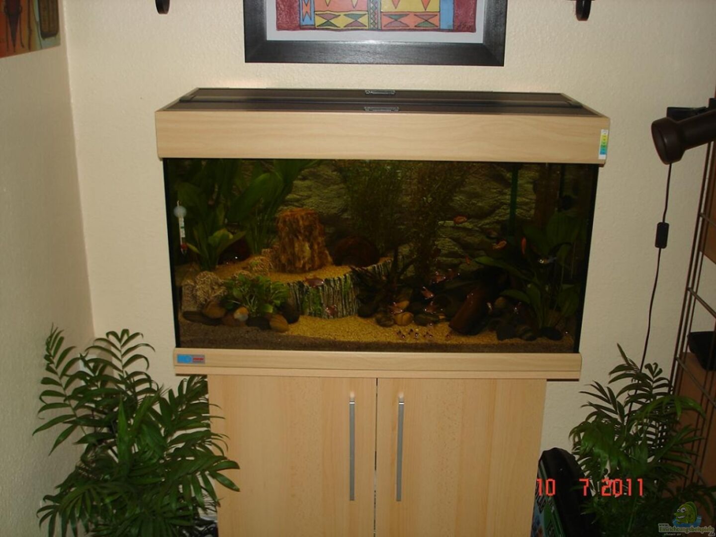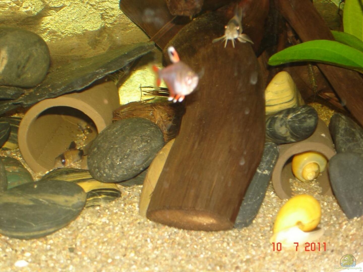 Durch den ursprünglich ungünstigen Besatz richteten sich aktuell meine Bemühungen darauf, es allen Bewohnern so angenehm wie möglich zu machen. Sobald es möglich sein wird (hoffe, dass ich bald ein zweites AQ für die Brokatbarben einrichten kann), möchte ich das AQ ??? dank der vielen Inspirationen und Informationen hier auf Einrichtungsbeispiele.de - zu einem Südamerikabecken umgestalten.
