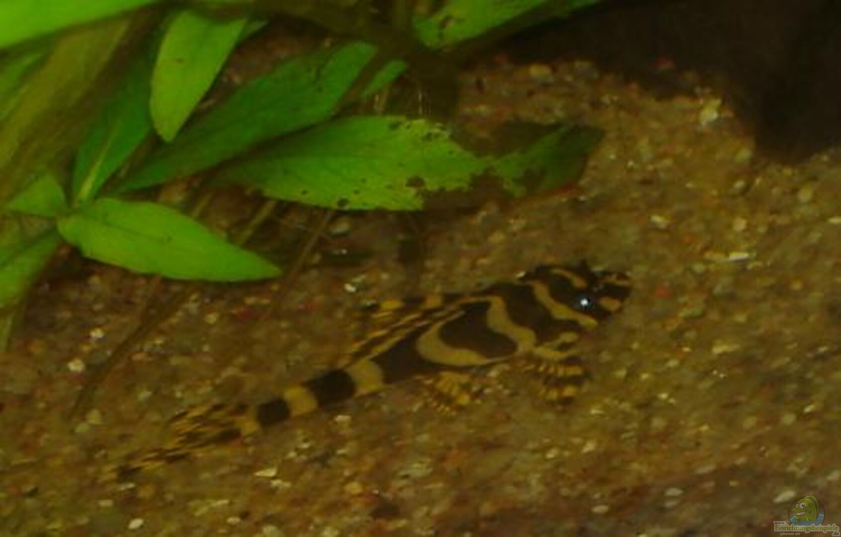 Nach der Einlaufphase kamen dann endlich die ersten Fische...und ebenso meine ersten Fehltritte. So unbedarft wie ich zum Aquarium gekommen war, genauso unbedarft suchte ich mir die ersten Fische aus...wie ich dachte unter kompetenter Führung des Fachverkäufers. Somit kam dann auch mein erster Besatz zustande: Brokatbarben, Panda-Panzerwelse und Schmetterlingsbuntbarsche...ach ja, und noch ein Zwergkrallenfrosch.