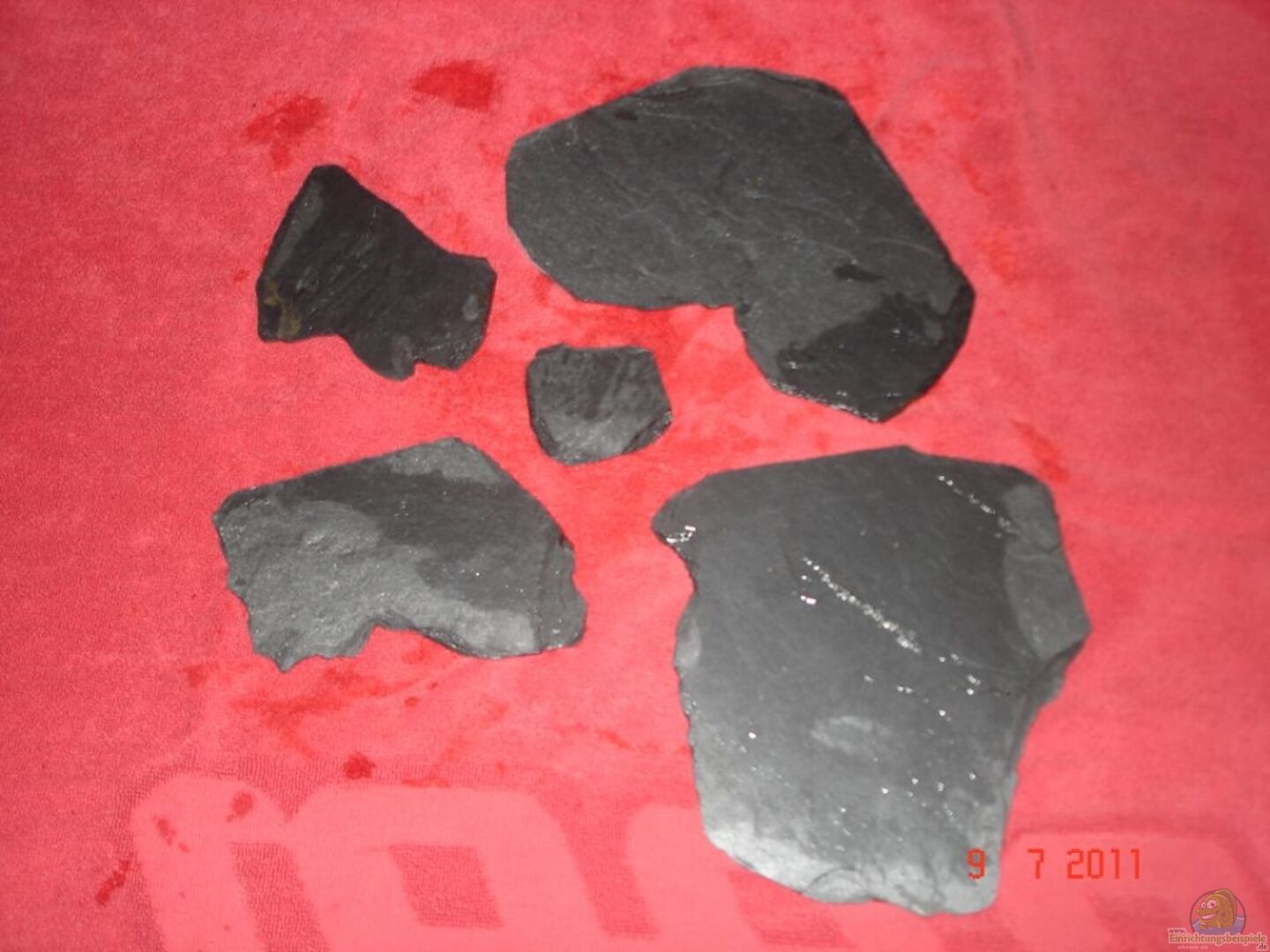* schwarze Schieferplatten (gereinigt, zugeschnitten und abgefeilt)