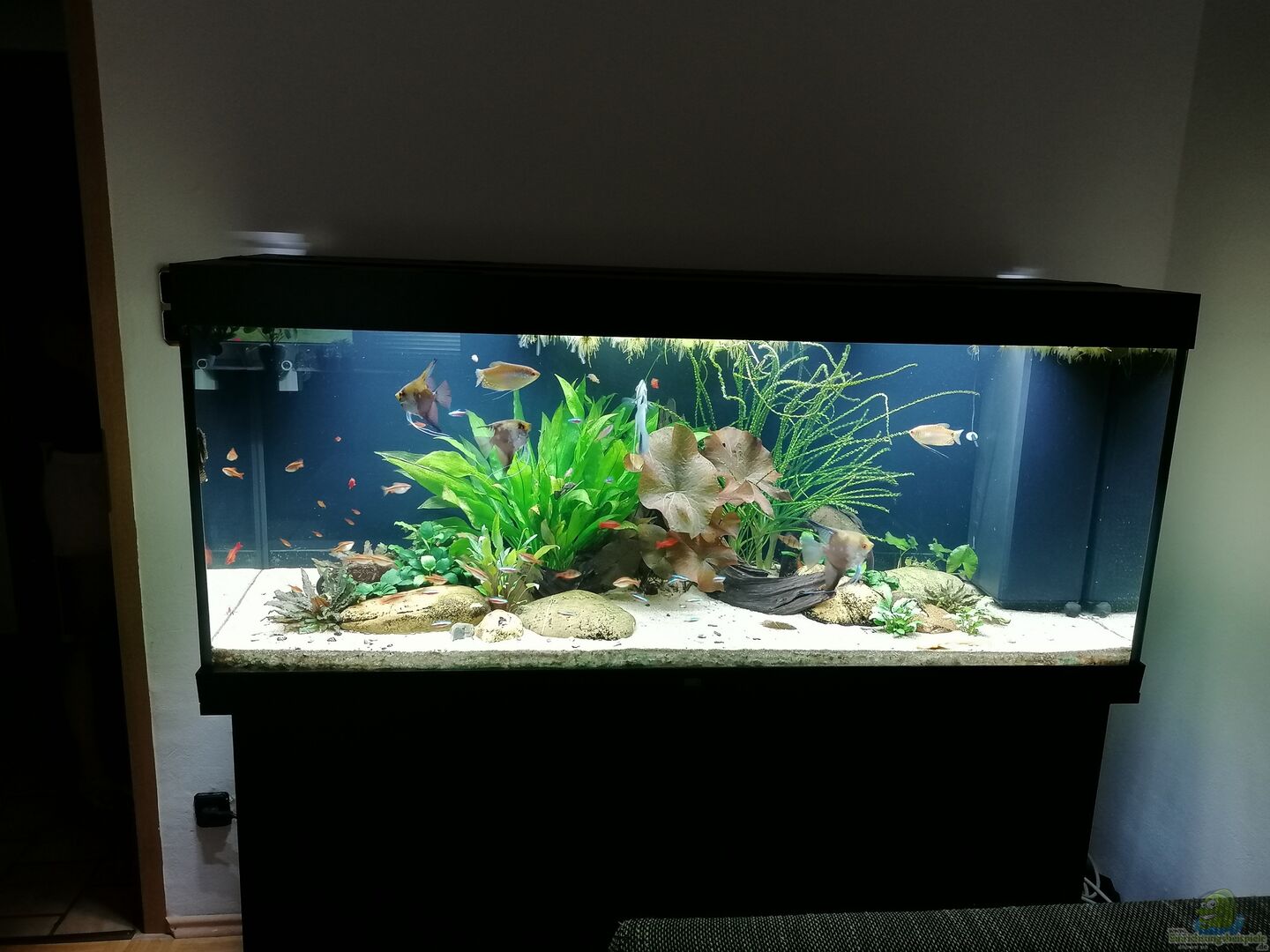 Es handelt sich um ein Standard Juwel Rio 450. Die komplette Einrichtung wurde aus meinem vorherigen Rio 240 übernommen und teilweise ergänzt. Das vorherige Aquarium wurde einfach zu klein, etwas das die meisten sicher nachvollziehen können.