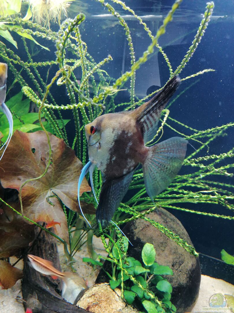 Der Besatz ist recht bunt aufgrund einer alten Aquarienauflösung und war so nicht in Gänze geplant, bislang wird sich aber gut vertragen und die Tiere zeigen ein normales Verhalten und tolle Farben.