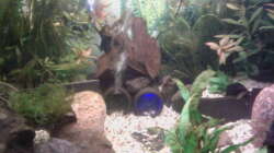 -2 Moorkienwurzeln auf der Terrasse und weiter vorne, damit es aussieht als ob ein Stamm hinenragt -- bietet Versteck für Fische&Garnelen.