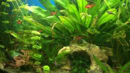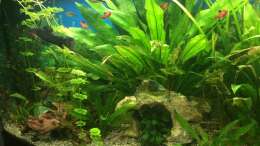 Es befindet sich der Heizstab M300 von Fluval mit 300 Watt Leistung im Becken. Auf eine CO2-Anlage wurde bislang verzichtet. Der Planzenwuchs ist mittel bis stark. Beim 14-tägigen Wasserwechsel werden die Pflanzen immer geschnitten, da manche sehr schnell wachsen. Eine Osmose Anlage befindet sich im Haushalt, allerdings noch nicht in Betrieb.