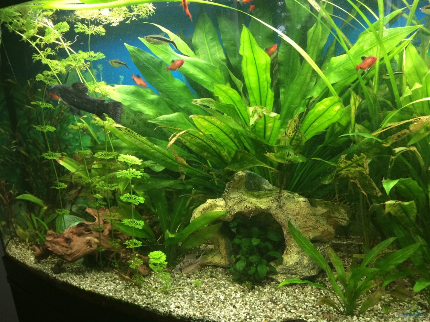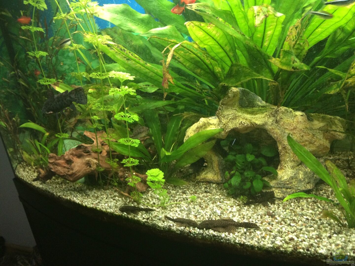 Leider ist ein Algenfresser gestorben. Habe derzeit ein Medikament im Wasser, was gegen einen Darmparasiten ist. Hoffe die Fische werden alle wieder gesund. Ein Skalar war bereits erkrankt. Wurde zum Glück gleich behandelt und jetzt gehts wieder bergauf. ;)