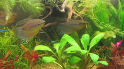 Das Projekt "Umgestaltung" nimmt nun wirklich schöne und konkrete Formen an. Das Aquarium ist total beruhigt. Es wuchert ordentlich zu und erinnert nun wirklich sehr naturnah an einen Bachlauf. Die Fafis kommen vermehrt nach vorne und besetzen alle ihr eigenes kleines Territorium. ALLE haben begonnen Schaumnester zu bauen und Eiablage ging bereits vor sich. Auch die blauen Neons beanspruchen nun, nach Abgang der Platys, wieder das gesamte Becken für sich und nutzen die dichte Deckung so gut wie nicht mehr. Den Bodenfischen passt das Dickicht ebenfalls um einiges Besser denn sie haben ihr Verhalten insofern geändert, als das sie viel mehr an die freien Stellen kommen und sich beobachten lassen. Rundum bin ich mit der Veränderung zufrieden UND...es ging schnell von Statten denn das Becken sieht nun wirklich völlig anders aus. Ich lade morgen noch Fotos hoch und freue mich natürlich über eure Meinungen zur Veränderung.