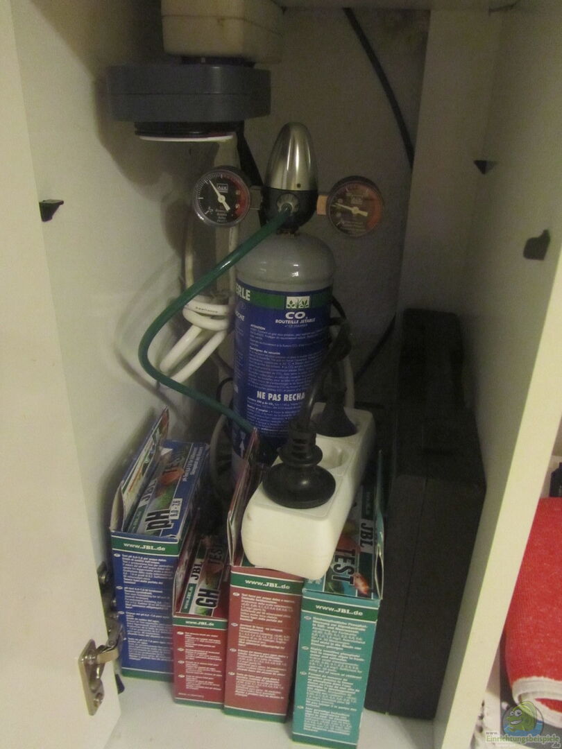 Die Rio 180 Kombi steht auf dem dazugehörigen Aquarienschrank. Dieser bietet Platz für die Co2 Flasche, die Tests und das Futter & Equipment. An Technik ist im Wohnzimmer wo das Becken steht nichts zu sehen. Die GER??USCHKULISSE ist bei NULL - der Innenfilter ist nicht zu hören. Durch den Innenfilter fasst das Becken rund 180 Liter. Die Abstimmung der technischen Gerätschaften mit der Beckengrö??e war bei dieser Kombi wirklich goldrichtig. für einen Neuling (vor 3 Jahren) wie mich war es das Beste mich von Anfang an auf die Fische, Wasserwerte und vor allem Pflanzen konzentrieren zu können. Wünsche bzw. Fehlen vom einen oder anderen Technikequipment wird mir erst nach den Jahren immer bewusster und es war fein diesen Punkt von Anfang an nicht so berücksichtigen zu müssen. Ich kann es einem "Neuling" wirklich nur empfehlen denn auch jetzt arbeitet das gesamte System fehlerfrei und die WW sind seit gut 2 Jahren absolut stabil und bestens.