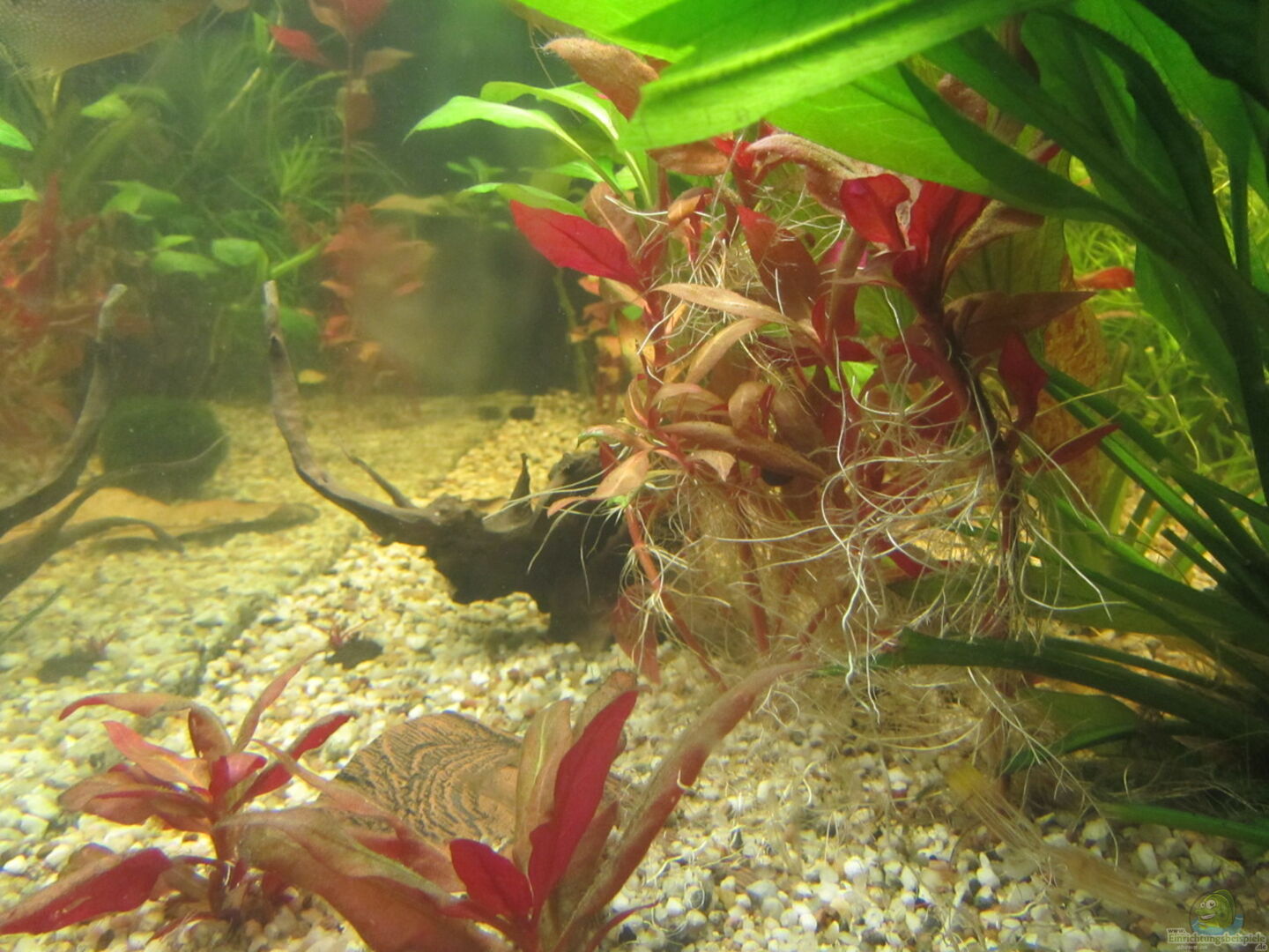 18.12.2017 - Das Becken wuchert ordentlich zu. Die Mofafis bauen Schaumnester und es kam bereits zur ersten Eiablage. Es geht genau in die richtige Richtung und ich bin mit der Entwicklung seit der Umgestaltung sehr zufrieden. Die Pflanzen wachsen nach wie vor sehr gut jedoch ist nun durch den starken Wuchs die Lichtzufuhr nicht mehr so hoch was vor allem die roten Pflanzen ins Stocken geraten lässt. Fotos vom jetzigen Stand lade ich noch vor Weihnachten hoch.