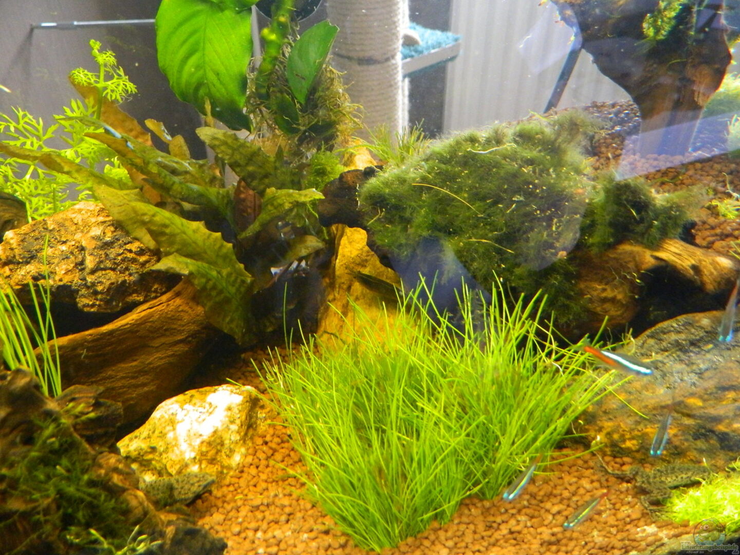 - das Aquarium, welches hier gezeigt wird existiert so nicht mehr, die Frösche bekommen ein etwas grö??eres Becken und müssen sich dieses dann ausschlie??lich mit den Oto`s teilen, was auch wunderbar harmoniert