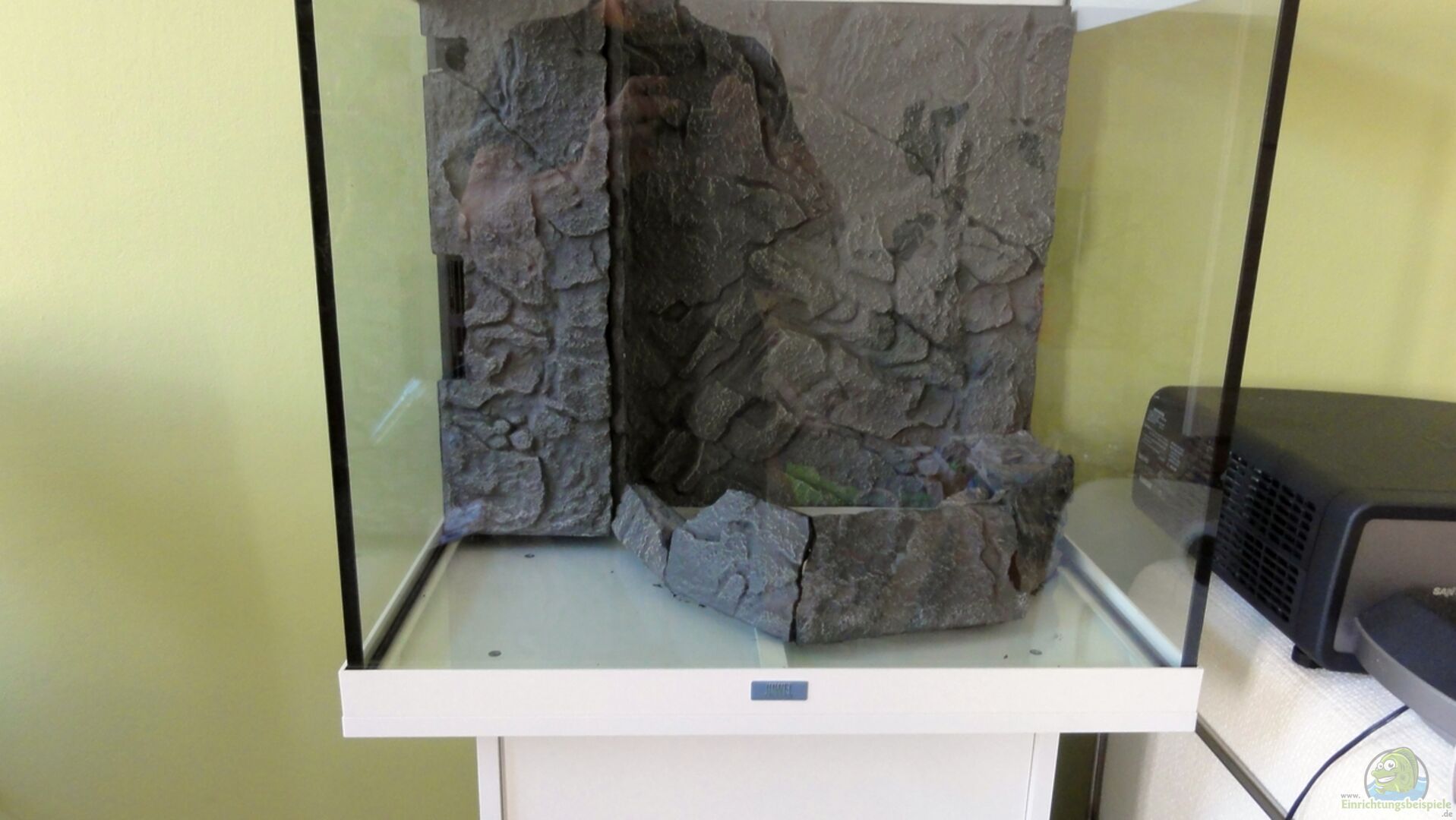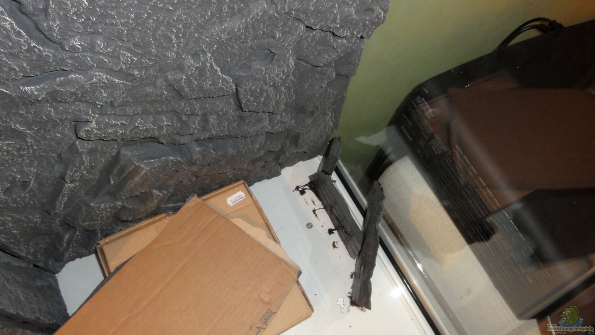 Aus den Resten der Juwel Stone Granite Rückwand und Filtercovers haben wir zwei Terrassen und mehrere Höhlen gebastelt. So wird das Aquarium in drei Ebenen eingeteilt, was beim im Verhältnis zur Länge sehr hohem Lido 120 sowohl optisch als auch für die Tiere Sinn macht. Au??erdem führt es das Restmaterial der überteuerten Rückwand einer sinnvollen Verwendung zu.