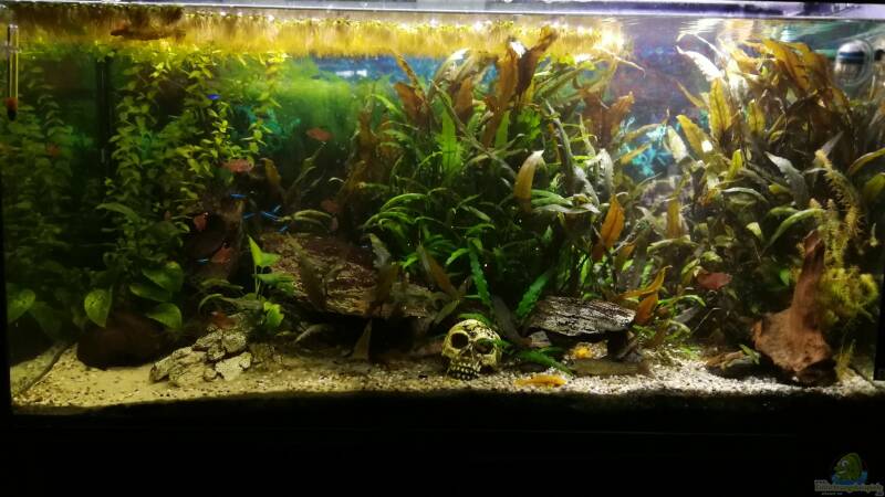 das ganze Becken inkl. Pflanzen, Deko und Besatz in schlechtem/unterversorgten Zustand übernommen von meinem Opa, da dieser verstorben ist und ich ihm versprochen habe mich darum zu kümmern. Alles suboptimal, wird nach und nach angepasst. In baldiger Zukunft wird ein 150/50/50 Becken einziehen, da soll dann alles passen.