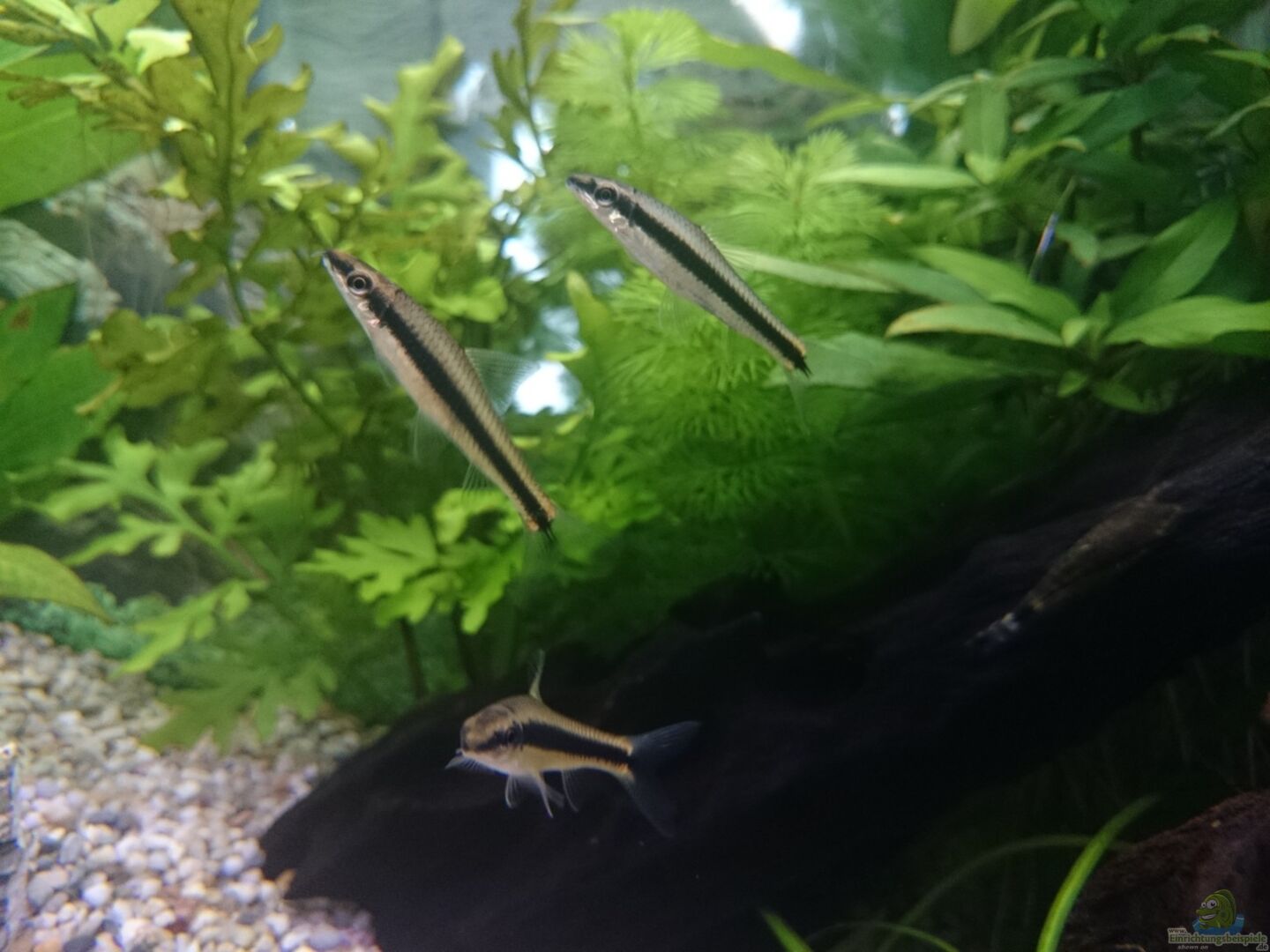 Man sieht deinem Aquarium an, dass es noch nicht so ganz lange läuft, da wird sich noch so einiges entwickeln. Schön, dass du dein Aquarium nicht überbesetzt hast. So könnte es auch mit deinem etwas zusammengewürfelten Besatz klappen.