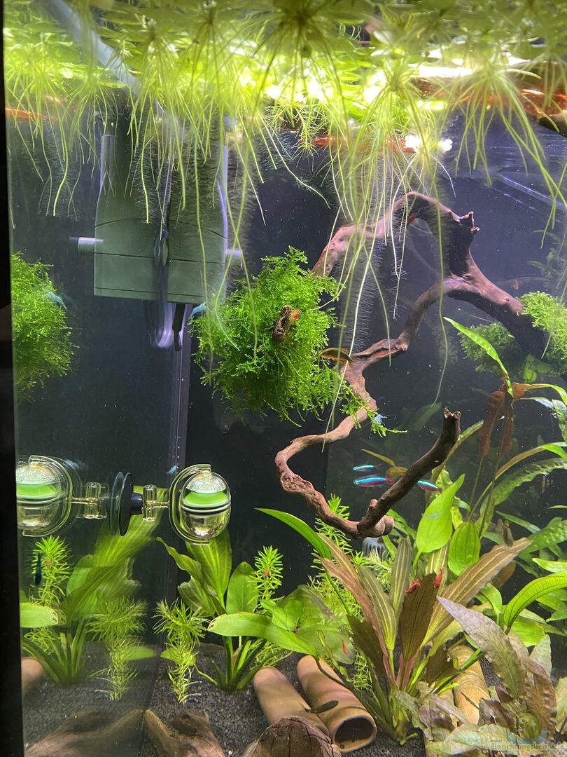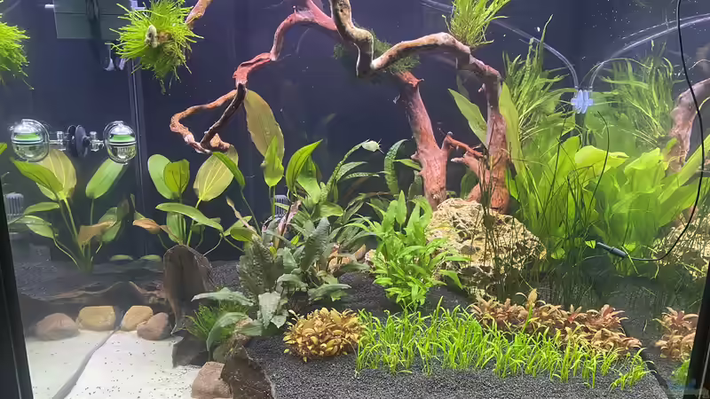 Das Becken wurde am 12 Februar 2022 eingerichtet, ich wende das 90 Tage Prinzip von Tropica an, funktioniert bis jetzt zu 100%, keinerlei Probleme mit Algen, keine Probleme mit den Wasserwerten.Die Pflanzen sind auschlie??lich von Tropica, habe ich im Internet bei einem kleinem aber feinem Laden online bestellt, Guppy4Friends, Nicole Martin hei??t die Betreiberin, absolut zu empfehlen, super nett und kompetent.Vom ersten Tag an habe ich das Aquarium mit Filterbakterien aufgeimpft, dazu verwende ich Seachem Stability, auch darüber kann ich nur positiv berichten obwohl ich da am Anfang sehr skeptisch war, aber die optimalen Wasserwerte und das Wohlfühlen der eingesetzten Tiere sprechen für sich.Ich hatte bis zum heutigen Tag noch keinen einzigen Verlust bei den Tieren.Das Programm läuft jetzt seit Sonntag 27 März den 42 Tag, die neuen Bilder die ich eingestellt habe sprechen für sich, ich habe keinerlei Probleme.Die Beleuchtungsdauer ist jetzt auf 10 Stunden eingestellt, dabei werde ich es auch belassen.