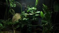 Anubias barteri var. nana 'Gold' Diese schöne Varietät von Anubias nana hat hellgrüne, fast gelbe Blätter. Ihre Kulturansprüche sind so, wie bei der Art angegeben, sie wächst sogar noch langsamer. Nicht nur in Aquarien mit viel Anubias ist diese Sorte eine wertvolle Ergänzung zu grünblättrigen Arten.