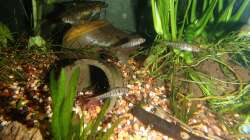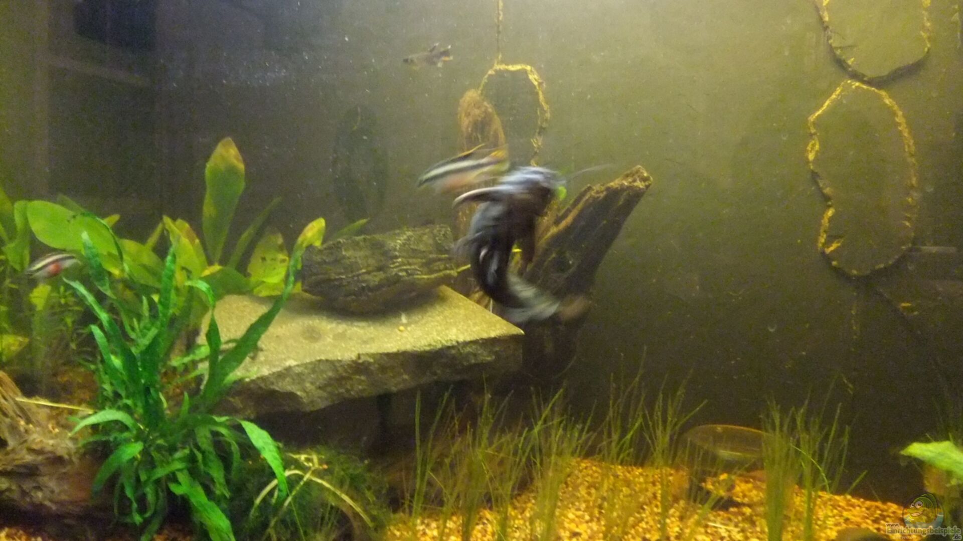 Aquarium: Das Aquarium sollte einige Versteckmöglichkeiten bieten und eine teilweise dichte Bepflanzung haben. Der Bodengrund sollte aus feinem Sand oder Kies bestehen. Freier Schwimmraum muss ebenfalls vorhanden sein! Die Beleuchtung darf nicht zu hell sein, da die Fische sonst scheu werden und so nur zur Fütterung erscheinen!
