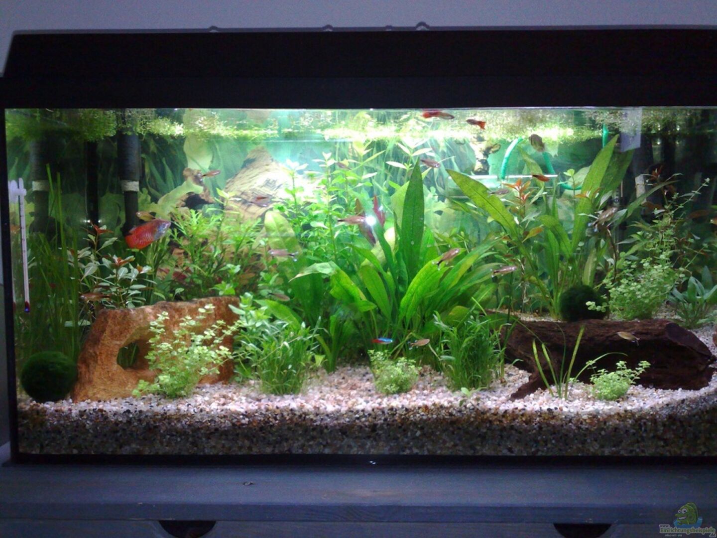 Schwimmpflanzen eingesetzt (Fadenfische fühlen sich sehr wohl mit diesen, Becken wirkt dunkler),