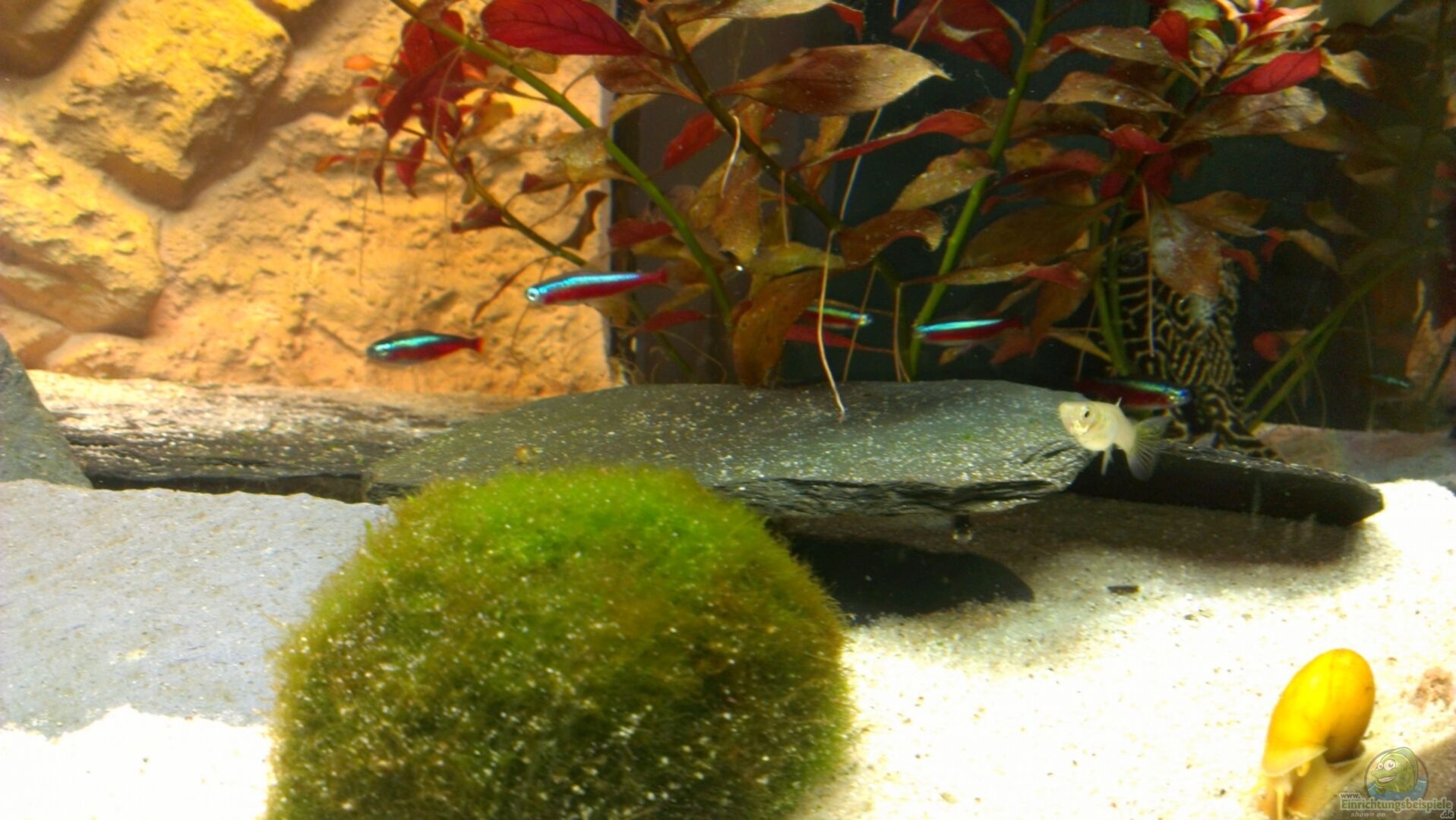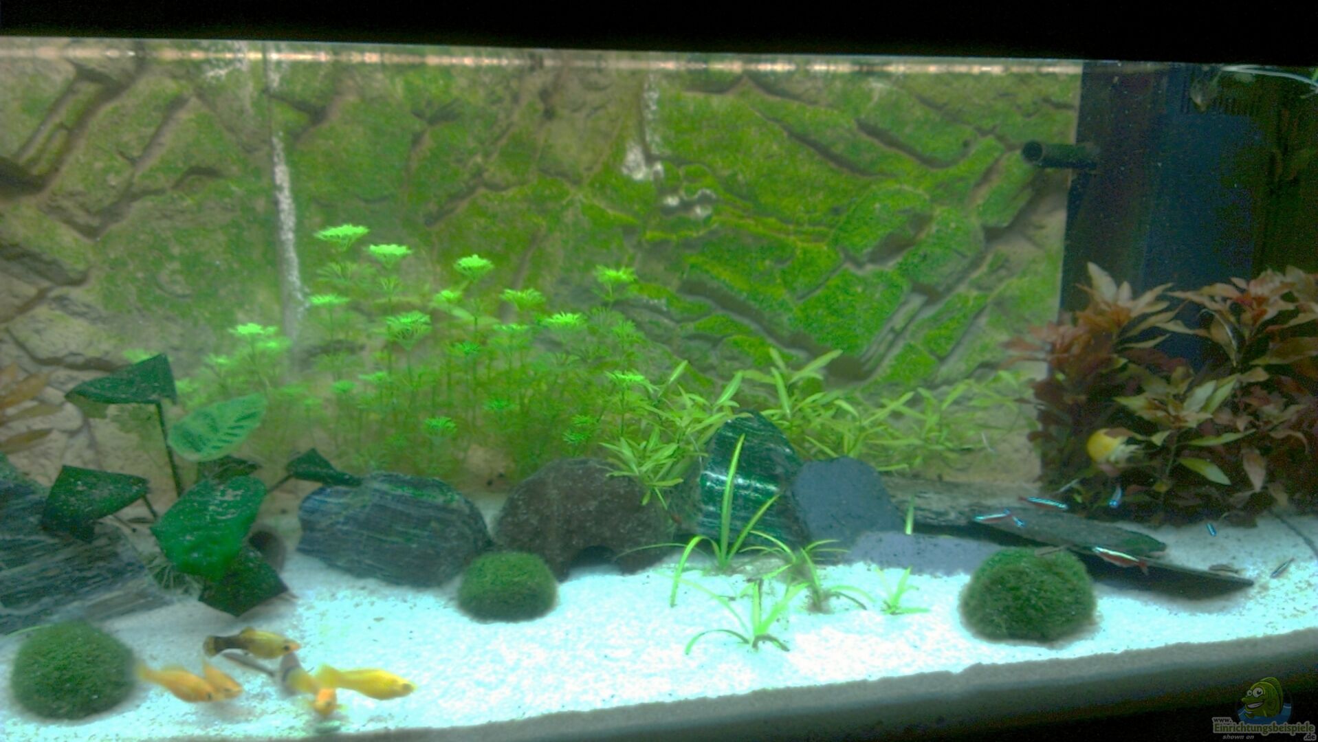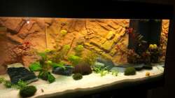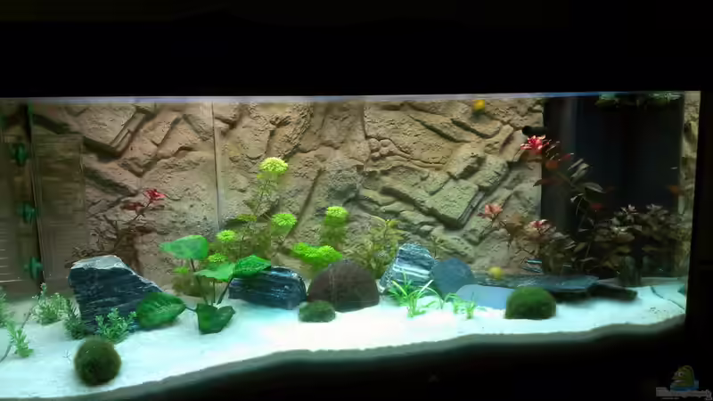 da kann man mehr draus machen. Erstmal eine tolle Beckengrö?e und tolle Rückwand ! Die Deko ist ja bekanntlich Geschmackssache aber Pflanzen kannst du ruhig noch mehrere einpflanzen.