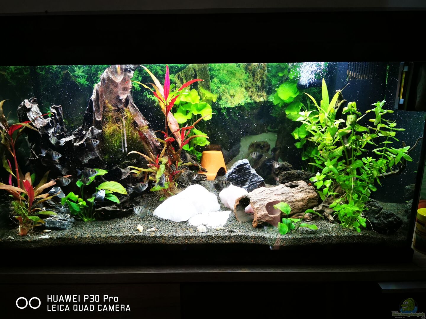 15 Trauermantelsalmler, 5 Panda Garra (Prachtalgenfresser), 5 Panda Panzerwelse, 2 Schmetterlingsbuntbarsche