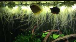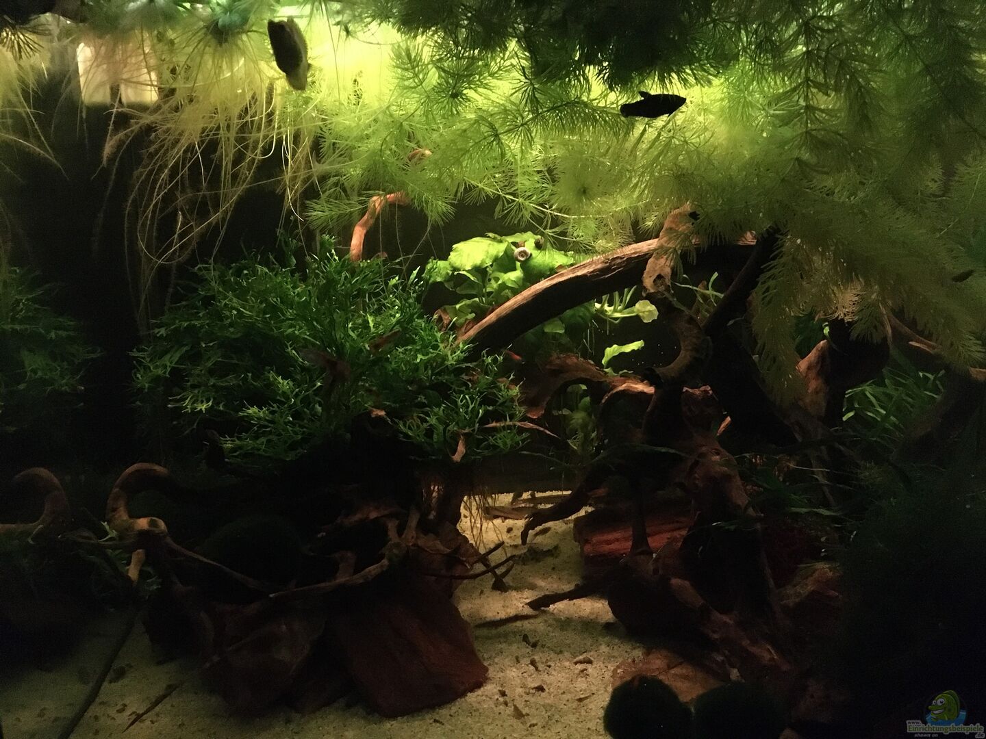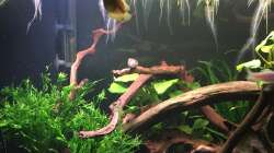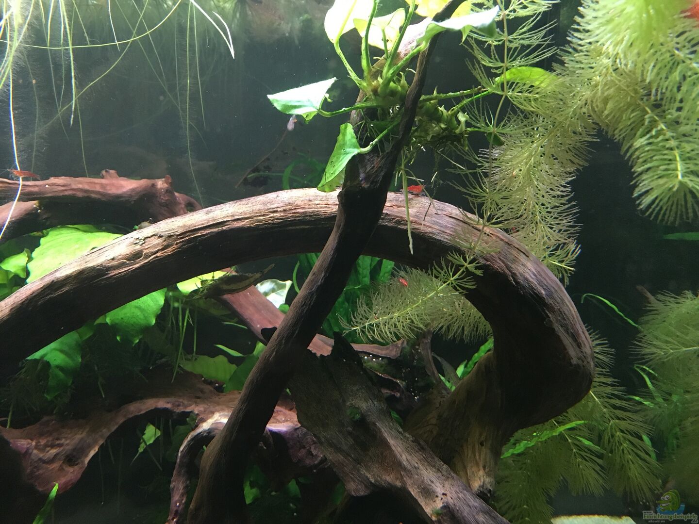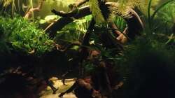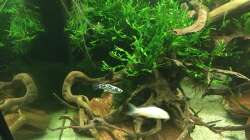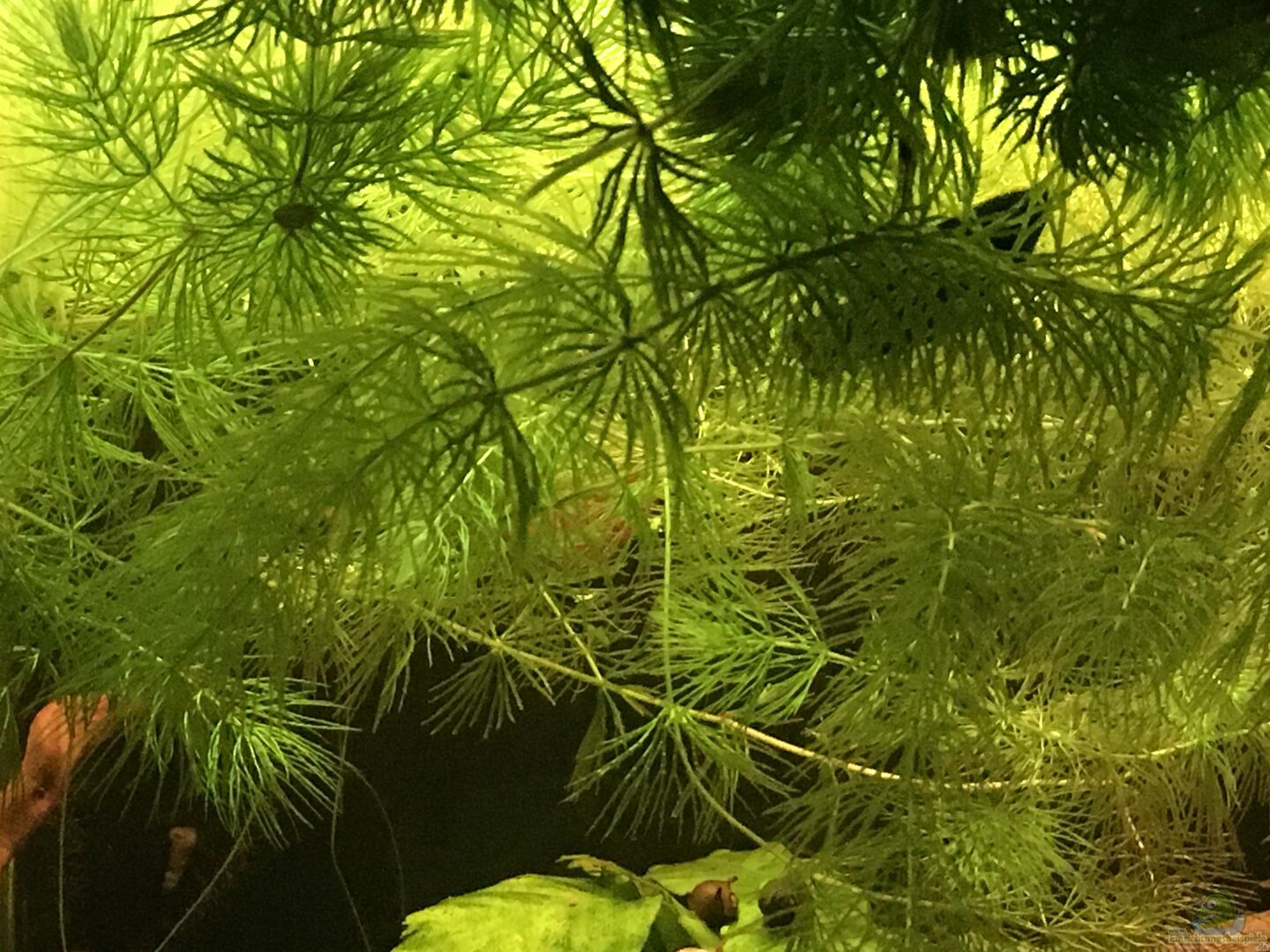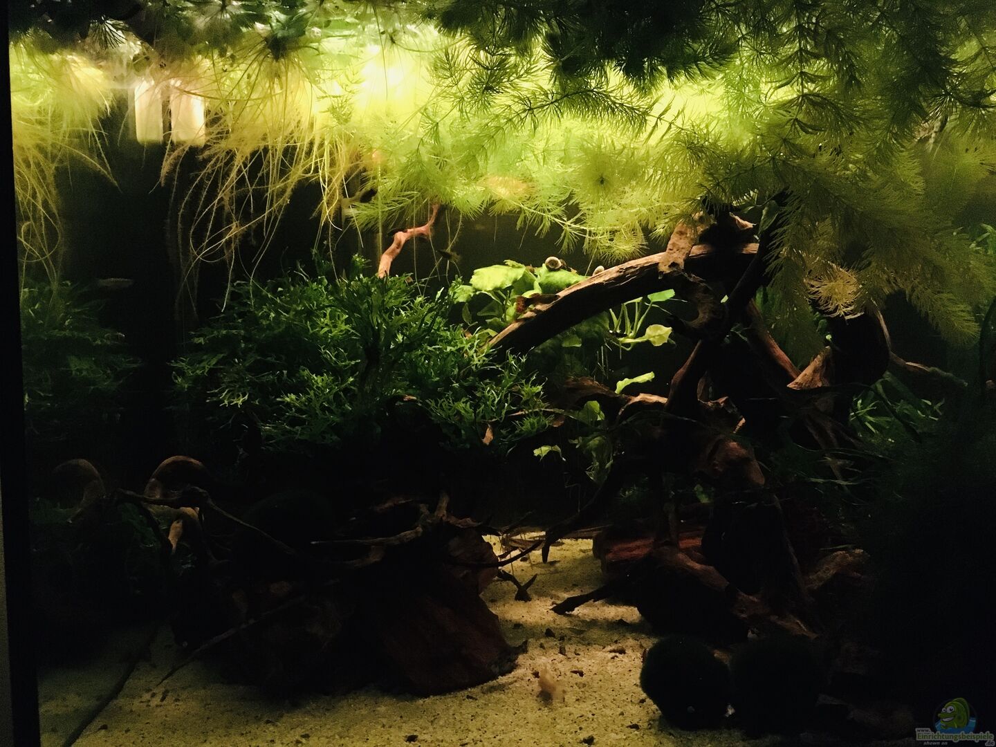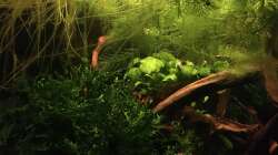 Hier habe ich mich für Moose und Aufsitzerpflanzen entschieden, Ausnahme, eine Amazonas Schwertpflanze.Das Becken ist mit Windelov-Javafarn, Needle Leaf Javafarn, Spikymoos, Christmasmoos und Javamoos bepflanzt. Es sind zwei weitere Sorten dazu gekommen, der kleinohrige Büschelfarn und der südamerikanische Froschbiss, beides Schwimmpflanzen.3 sogenannte Moosbälle, eigentlich eine Algenart die fast überall auf der Welt im Sü?? und Brackwasser vorkommt.