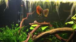 Also, Ersatzbecken vom Speicher, Wasser aus altem Becken zur Hälfte rein, andere Hälfte Frischwasser und die Fischis ziehen um..Ich habe das Becken am selben Tag noch auf einer bekannten Plattform inseriert und es wurde am Sonntagnachmittag abgeholt.Dann ging die Sucherei mit meiner Frau nach einem neuen Becken los, Leute, nicht einfach, da muss alles passen.Da wir gerade unser Esszimmer neu gestalten( Möbel aus Akazienholz) mu??te also etwas mit Akazie her..Da blieb am Schlu?? nur das Eheim Incpiria übrig, ich konnte mich damit anfreunden :-) Eine Woche später stand das neue Becken an seinem vorgesehenen Platz im Esszimmer und es konnte die Instalation der Technik und danach des Beckens selber beginnen.Damit wurden wir am Samstag den 17 Oktober fertig und es hie?? Wasser marsch.Nun hei??t es wieder einmal in Geduld üben, meine Skalare schauen sehnsüchtig vom Behelfsbecken in ihr neues Zuhause..So, Becken läuft jetzt eine Woche, ich habe heute mal etwas Kosmetik betrieben (Scheiben gereinigt)und noch eine Anubis eingesetzt. Die fünf Schnecken die das Becken schon bewohnen dürfen geht es gut, also ich denke mal das es ihnen gut geht da sie eifrig durchs Becken kriechen. Wasserwerke habe ich noch keine gemessen, au??er dem PH-Wert, der liegt im Moment bei 7, 4. Die Pflanzen entwickeln sich sehr gut, das Zwergfadenfischpaar versucht sich im Nachwuchs, das Männchen hat ein prächtiges Schaumnest gebaut, wirklich sehr interessant.Ich bin immer noch auf der Suche nach Perlhuhnbärblingen, das gestaltet sich in unserer Region gar nicht so einfach.Ich habe jetzt eine neue Adresse aus Zufall auf einer Internetseite gefunden, das schaut sehr vielversprechend aus, eine Aqualounge in Höheinöd, der Internetauftritt ist sehr schön.Heute habe ich der Aqualounge einen Besuch abgestattet, meine Erwartungen wurden vollkommen erfüllt. Toller Laden, Besitzer absolut kompetent und freundlich, ein ehemaliger, langjähriger Mitarbeiter bei Dennerle. Ich habe mir nur 3 Moosbälle mitgenommen, war aber garantiert nicht mein letzter Besuch.Habe das Asienbecken in ein Gesellschaftsbecken umgetauft, durch die 2 Albinopanzerwelse und ein paar wenige Endlerguppys denke ich das es in dieser Kategorie besser aufgehoben ist. Alles läuft prima. Achso, das Kampffischmännchen hat sein eigenes Becken bezogen.12.12.2020 Gestern sind vier Dalmatiner Mollys eingezogen, mir haben diese gemischten Becken eigentlich nie gefallen, jetzt bin ich anscheinend auf den Geschmack gekommen.30.12.2020 Wie erhofft beschenkte mich meine Frau am Heiligabend mit dem Eheim LED-Controller +, am ersten Weihnachtstag wurde das Teil installiert, mit einigen Anlaufschwierigkeiten.. Die dazugehörige Beschreibung finde ich schon grenwertig, das könnte man weitaus besser lösen.Nun ja, ich habe es letztendlich hinbekommen und bin auch vollauf zufrieden. Die Beleuchtungseinstellungen die man vornehmen kann sind leicht und verständlich durch das angebotene Menü zu verwirklichen, es gibt Sonnenauf und Untergangs Einstellungen sowie Mondeinstellungen. Fazit, ich bin vollauf zufrieden.Ich habe in naher Zukunft wieder einmal vor das Becken umzugestalten, mich zieht es wieder in die Richtung Wurzelaquarium ohne Pflanzen, eventuell ein paar Schwimmpflanzen.So, am vergangenen Sonntag ist es passiert, mein Eheim Incpiria wurde leer geräumt und hat den Standort gewechselt, vom Esszimmer wieder ins Wohnzimmer :-) Ich werde demnächst Bilder und Text einstellen, es geht wieder Richtung Südamerika..