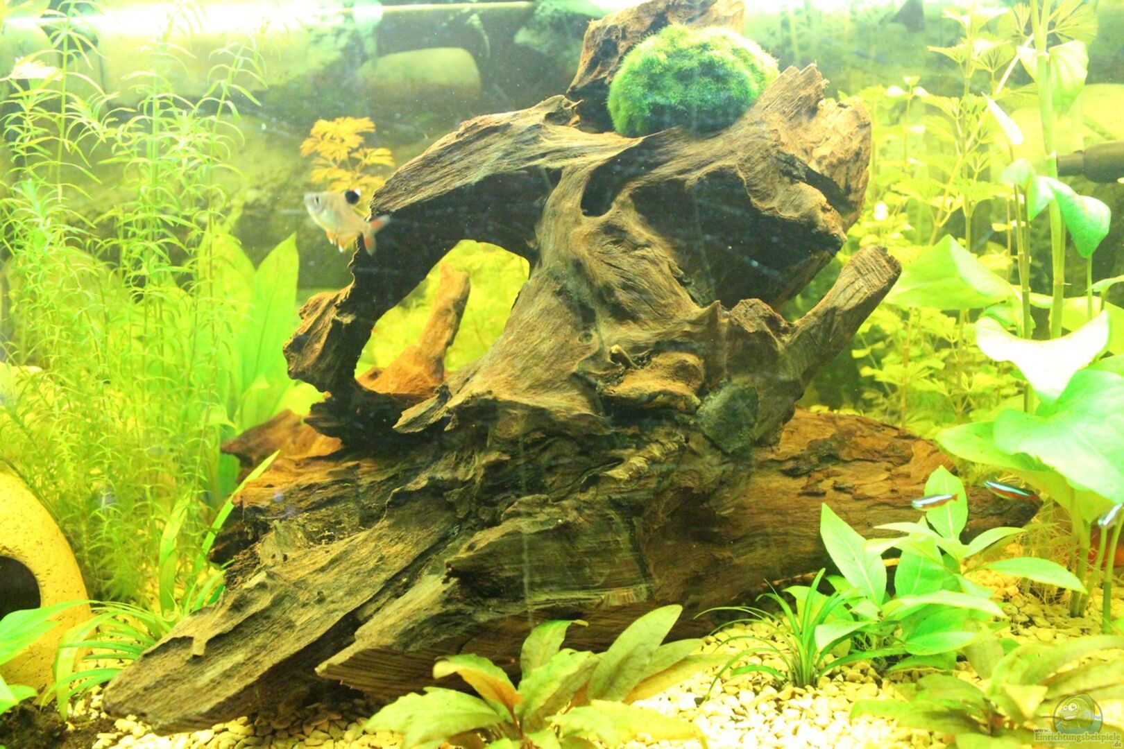 1 gro??e Mangrovenwurzel , 2 kleine afrikanische Lochsteine (ich weis, nichts für dieses Wasser geeignet , aber waren aus meinem Malawibecken und werdne mal gegen andere getauscht, wenn sie Probleme machen) , 1 Keramik Höhle