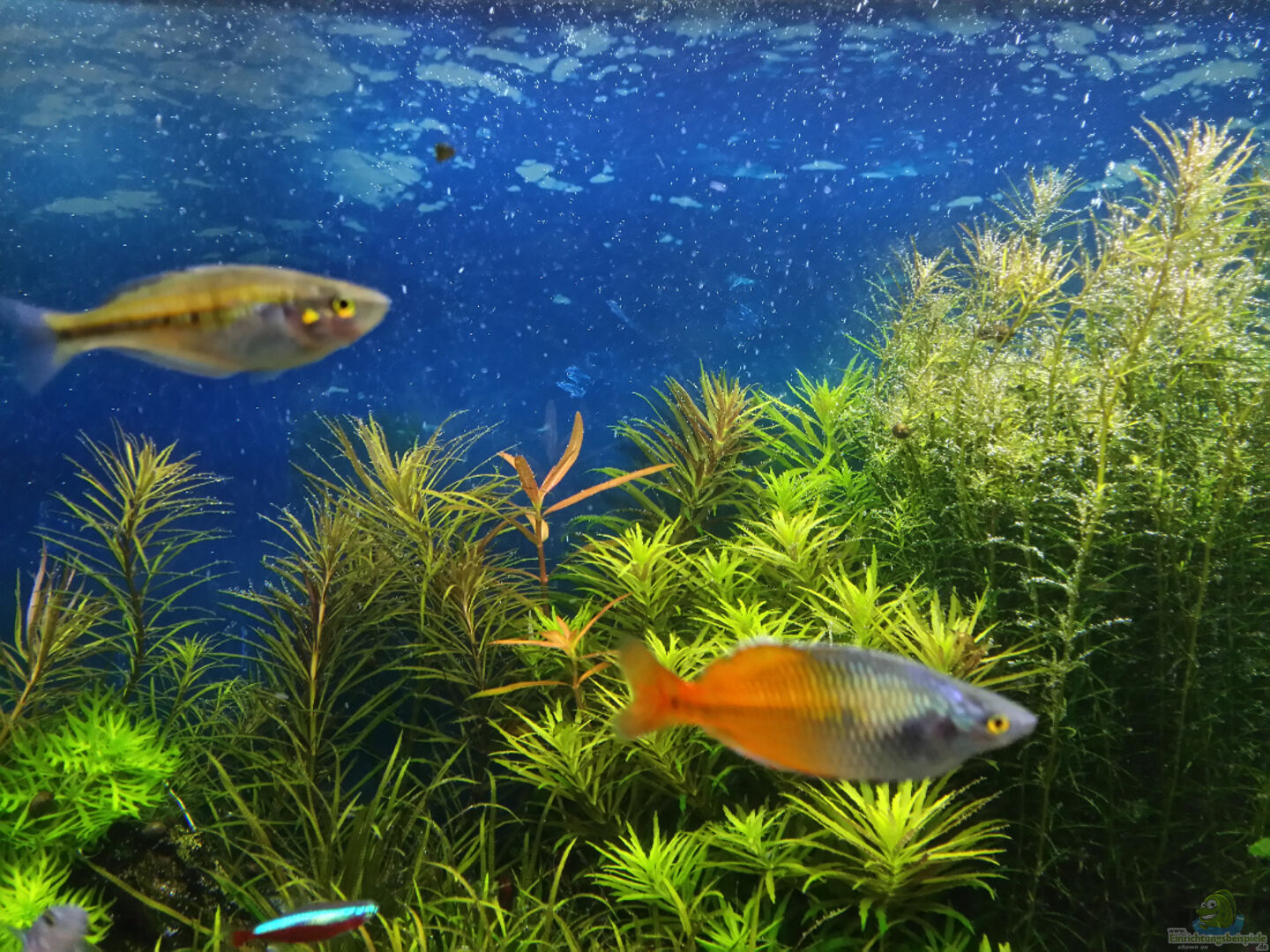 Die Bepflanzung und die Farben der Regenbogenfische passt perfekt zusammen.