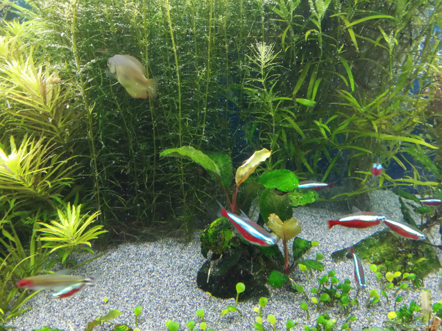 Sehr schön aufeinander abgestimmte Bepflanzung in deinem Aquarium und auch die Fotos von den Fischen sind super gelungen.