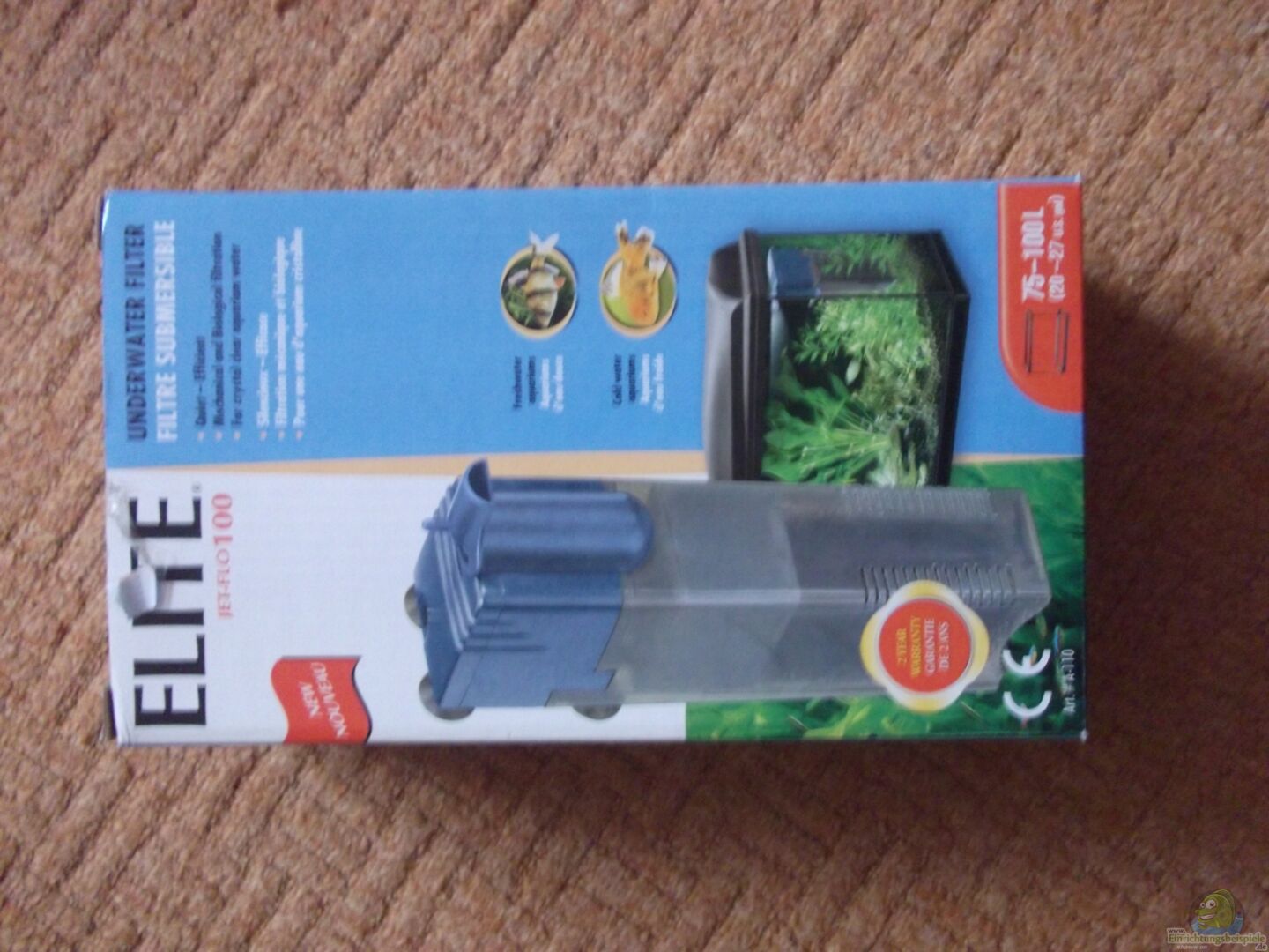 Der Unterwasserfilter von Elite (Jet-Flo 100) für eine Aquariumsgrö??e von 75 bis 100 Litern und einer max. Durchflussrate von 480 L/Hr (7 W) kommt in meinem Becken zum Einsatz.