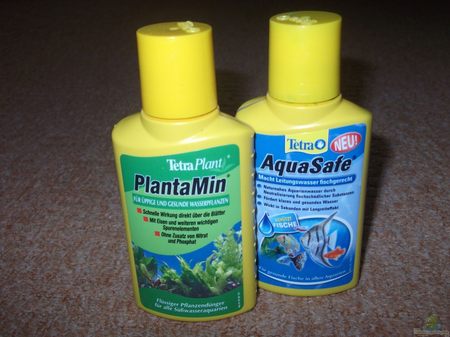 Seit der Neueinrichtung vor ca. 3 Wochen gebe ich auch einen Pflanzendünger von Tetra (PlantaMin) hinzu, um den Pflanzen einige zusätzliche Nährstoffe zu gewährleisten.