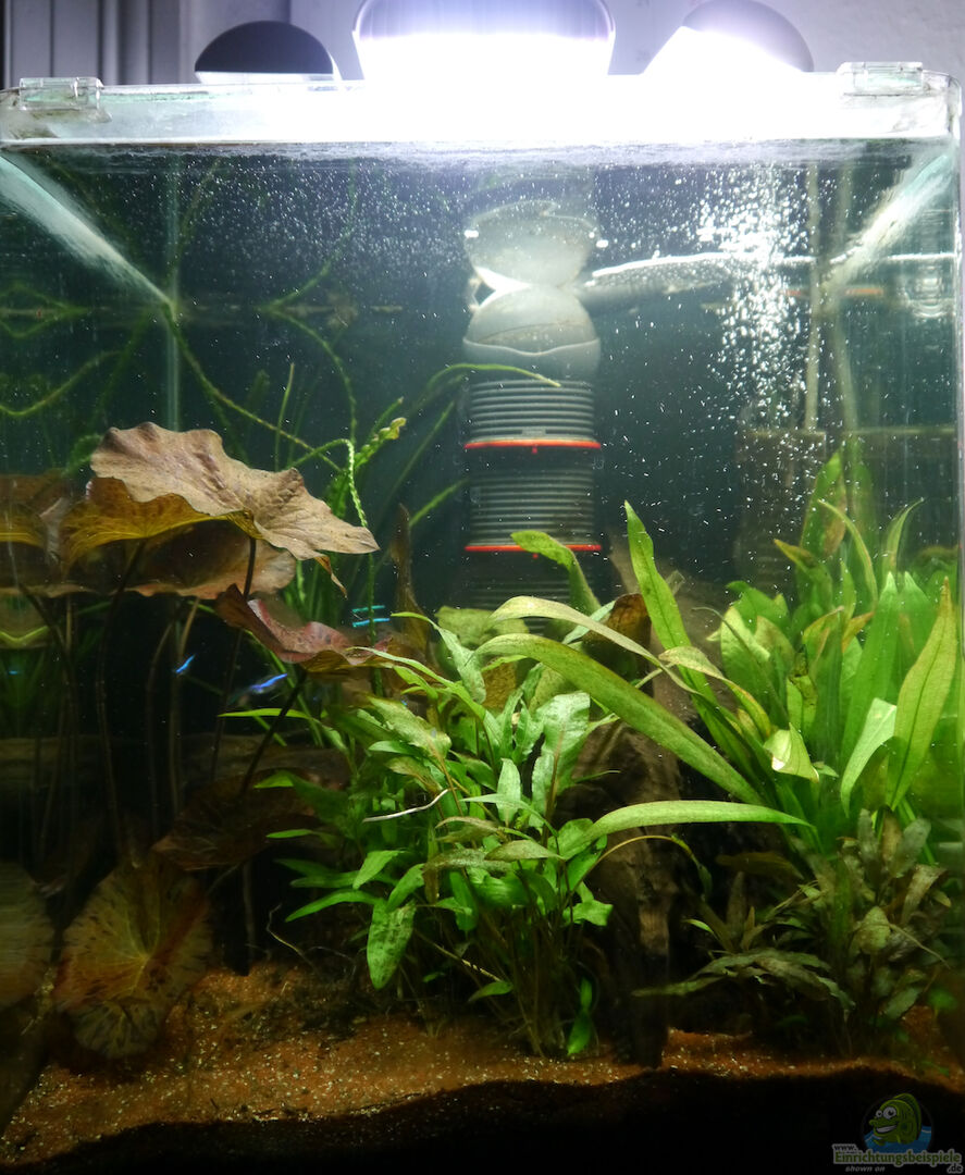 CO2-Düngung erfolgt durch das Dennerle Bio-CO2-Set (versorgt das Aquarium etwa 30 Tage lang mit CO2, wird daher einmal im Monat gewechselt)