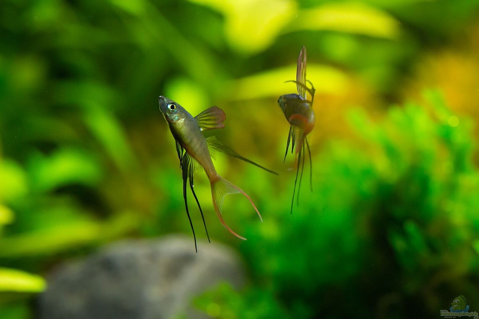 Die Iriatherina werneri sind per Recherche eigentlich mehr fürs Artenbecken geeignet, wachsen aber sehr gut bei mir und verstecken sich vor keinem anderen Fisch. Beim Futtern sind sie gieriger als die Roten Phantomsalmler. Abends in der letzten halben Stunde wenn das Licht nur noch auf 1% steht, ziehen oftmals komplett als Schwarm durchs Becken, das sieht dann entsprechend schön aus. Ansonsten tanzen sie den ganzen Tag mit gespreizten Flossen durchs Becken. Sehr schöne aber auch lebendige Fische.