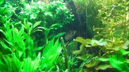 Mit dem Pflanzenwachstum löste sich auch das muffelnde (Cyano-)Blaualgenproblem. Bis auf Ausnahmen (Pinselalgen auf dem Holz oder verrottenden Blättern) gibt es praktisch keine Algen im Becken.