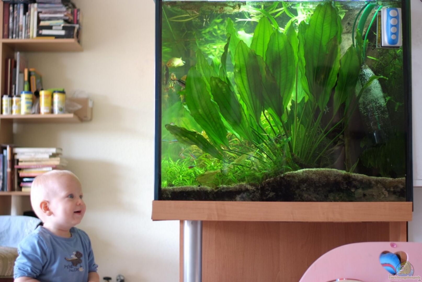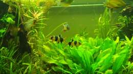 Nach 4 Jahren Betrieb wurden einige Fische nachgekauft (Neons, Fadenfische). Vermehrung derzeit keine mehr, was insbes. bei den Königschichliden auffällig ist - ich denke, für die Chichliden ist inzwischen das Wasser zu weich durch die konstante Verwendung von Regenwasser (KH= 2, GH=4).