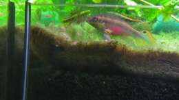 In der Sommerzeit kommen die tot geschlagenen Stubenfliegen immer sehr gut an, und gelegentlich Mückenlarven aus dem Regenfass. Und wenn die Prachtschmerlen Glück haben, ziehen sie dicke TDS aus dem Bodengrund. Dann sind sie für den Tag satt und kommen gar nicht erst zur Fütterung.