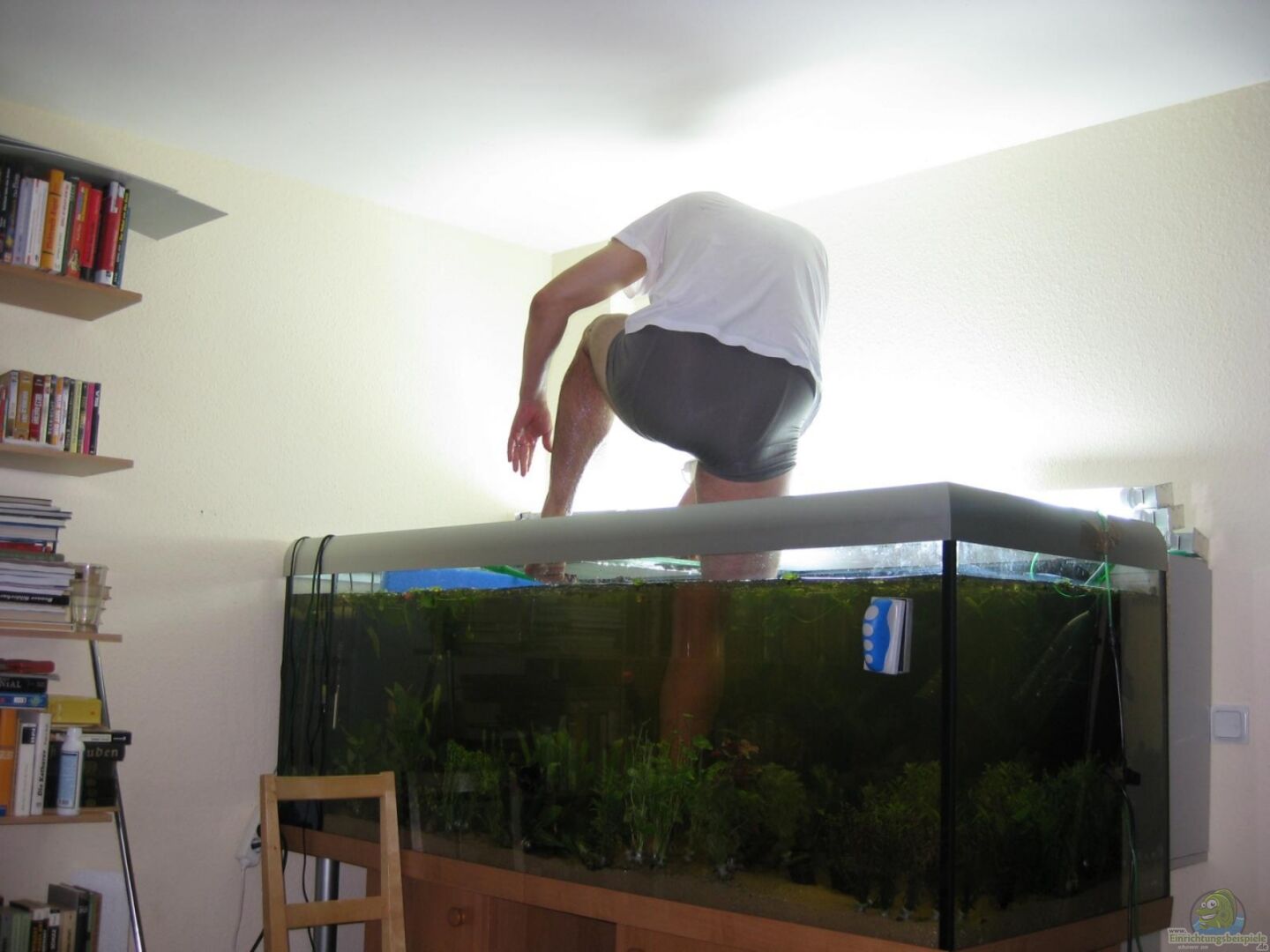 - 2015-05 umgezogen und mit identischem Aufbau weiter in Betrieb. Der Transport von 250kg Leergewicht war ein Abenteuer für sich. Fische 3 Monate im Aquarienladen untergebracht.