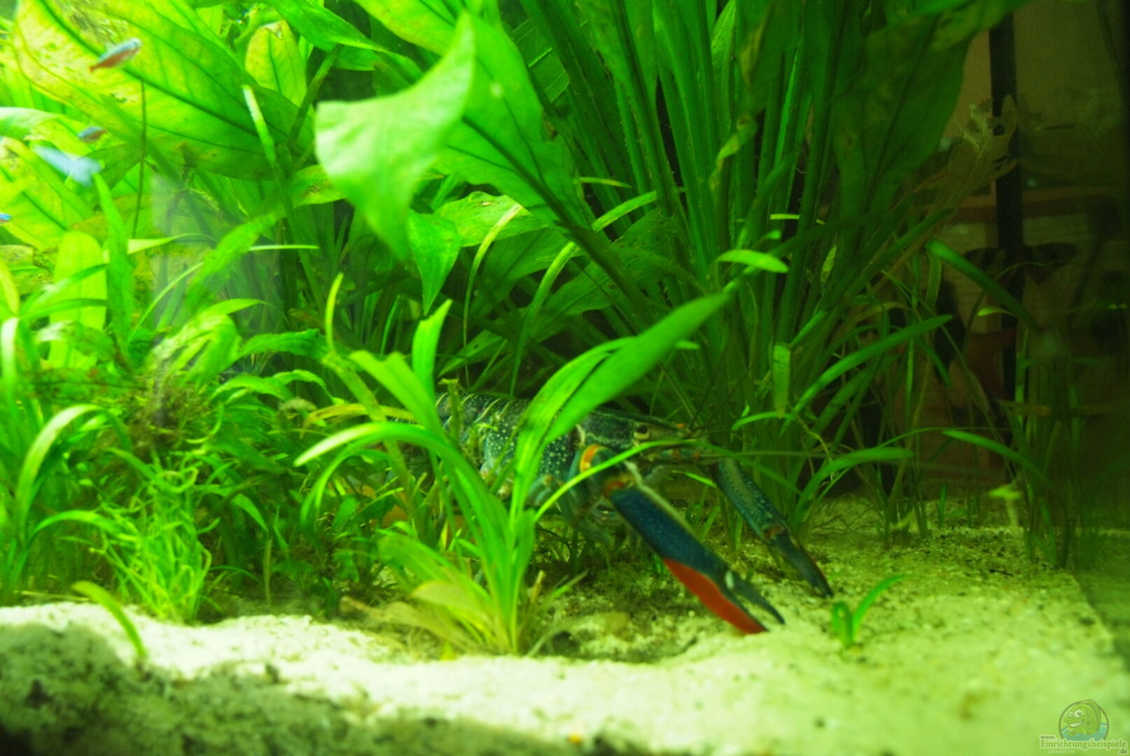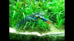Diesen Krebs, ca. 15-20cm lang, habe ich zufällig auf einer Fischmesse entdeckt und der Kinder wegen mitgenommen. Er kann kneifen als hätte man den Finger in einer Mausefalle :-) Mit allen Fischen gut Freund, er ist ein ruhiger Allesfresser, der flei??ig alle Reste im Becken tilgt und sich gelegentlich blicken lässt. Tagaktiv und nicht schüchtern.]