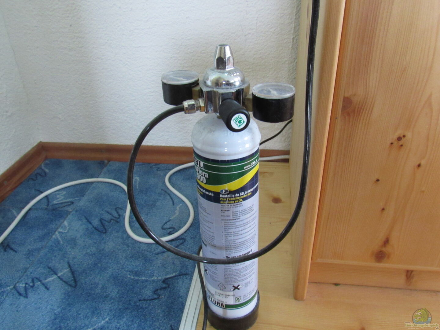 JBL ProFlora u500 CO2 Anlage mit 500g Einwegflaschen. Zusätzlich ist noch ein Blasenzähler integriert, um die CO2 Menge im Aquarium zu kontrollieren.