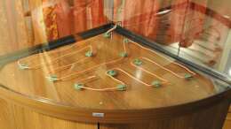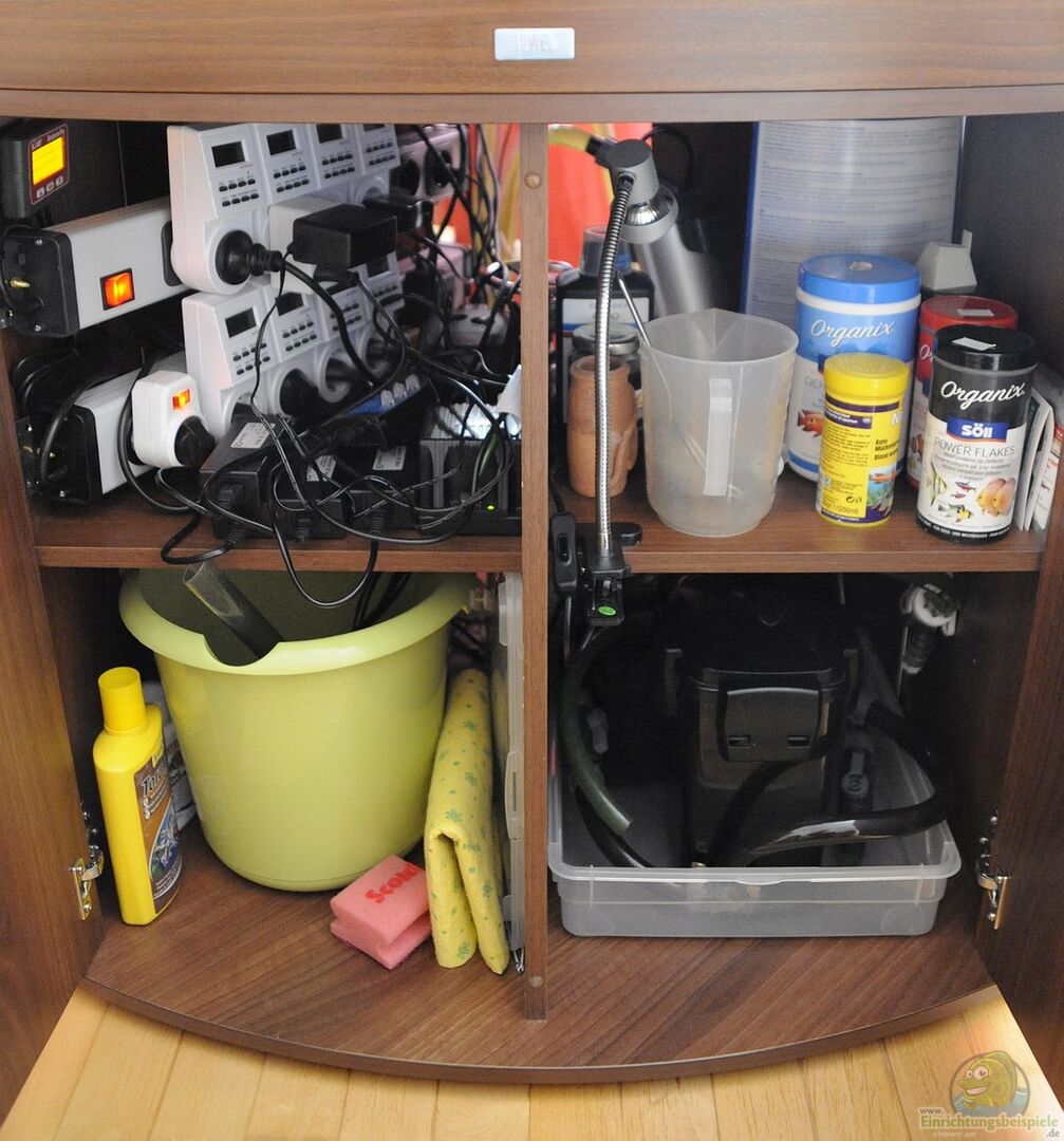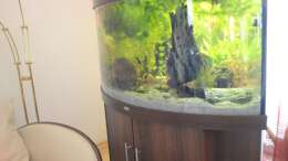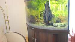 Ungeachtet der Möglichkeit ungenutzte Ecken nutzen zu können, besticht dieses Aquarium durch seine gebogene Frontscheibe mit einer Kantenlänge von 136, der ungewöhnlichen Tiefe von 87 und einer Höhe von 65 cm.