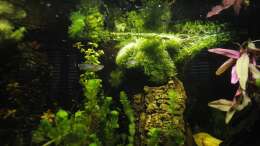 Woche 9 Es sind nun 2 Wochen vergangen, seitdem ich begonnen hatte massiv die sich angesammelten vergammelten Pflanzenreste abzusaugen. Offenbar hatte ich die Pflanzen zu dicht gesetzt. Da einige Pflanzen wesentlich schneller oder langsamer wuchsen oder ungünstig der Strömung ausgesetzt waren, hatte ich eine Pflanzen-Rochade auch gleich zum Anlass genommen die Dichte etwas zu lichten. Seither fault nichts mehr weg. Wasser wurde mit jeder Absaugung deutlich klarer.