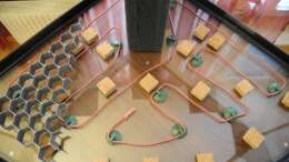 Der Glasboden und die Heizkabel werden durch ein auf Kork gelagertes Kiesgitter vor dem Spaten und größeren Steinen geschützt.