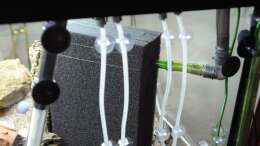 * 3 L Außenfilter für Torf und Filterwatte in den Kreislauf eingehängt.