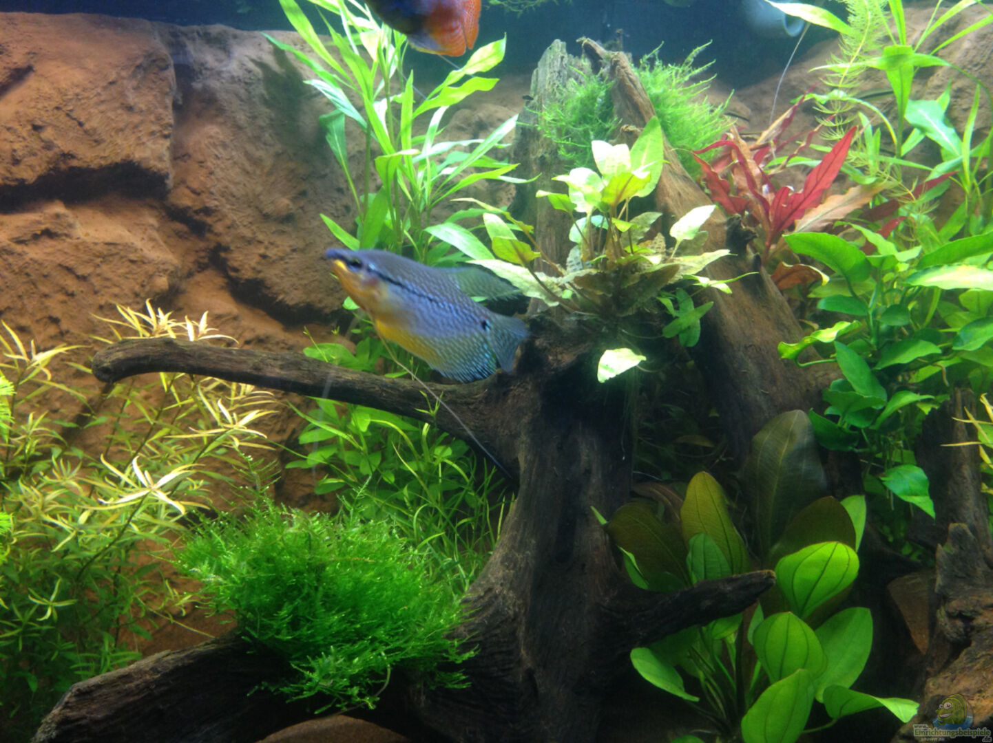 Der Besatz ist noch recht spärlich, da das Becken neu eingerichtet ist.