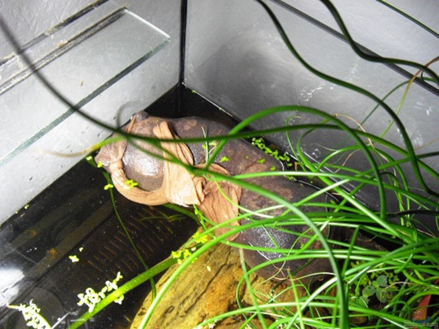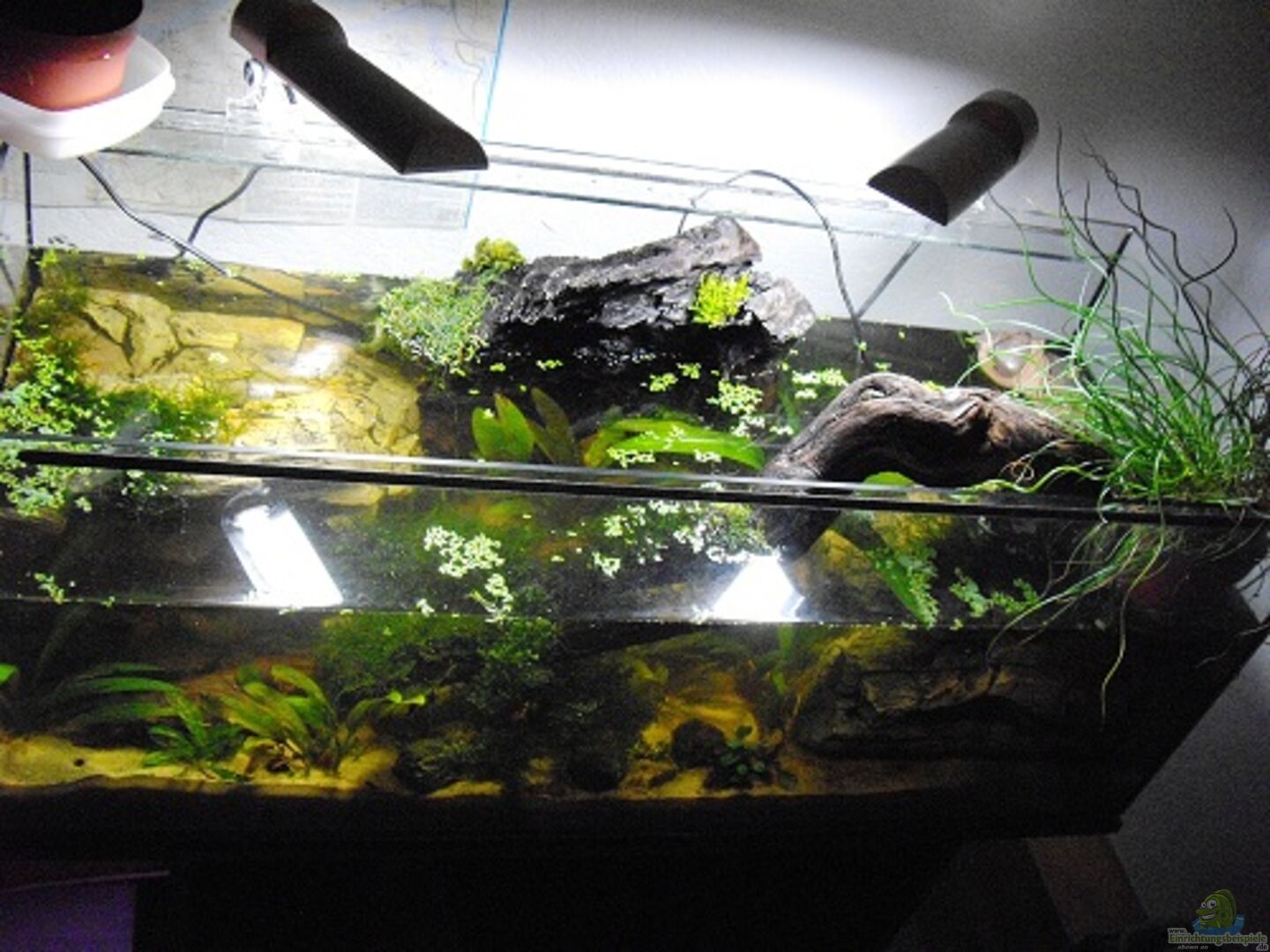 Das Becken hat mein Bruder irgendwann mal für seine damals noch kleinen Schildkröten geschenkt bekommen und von meinem allerersten Aquarium passte der Unterschrank dazu.