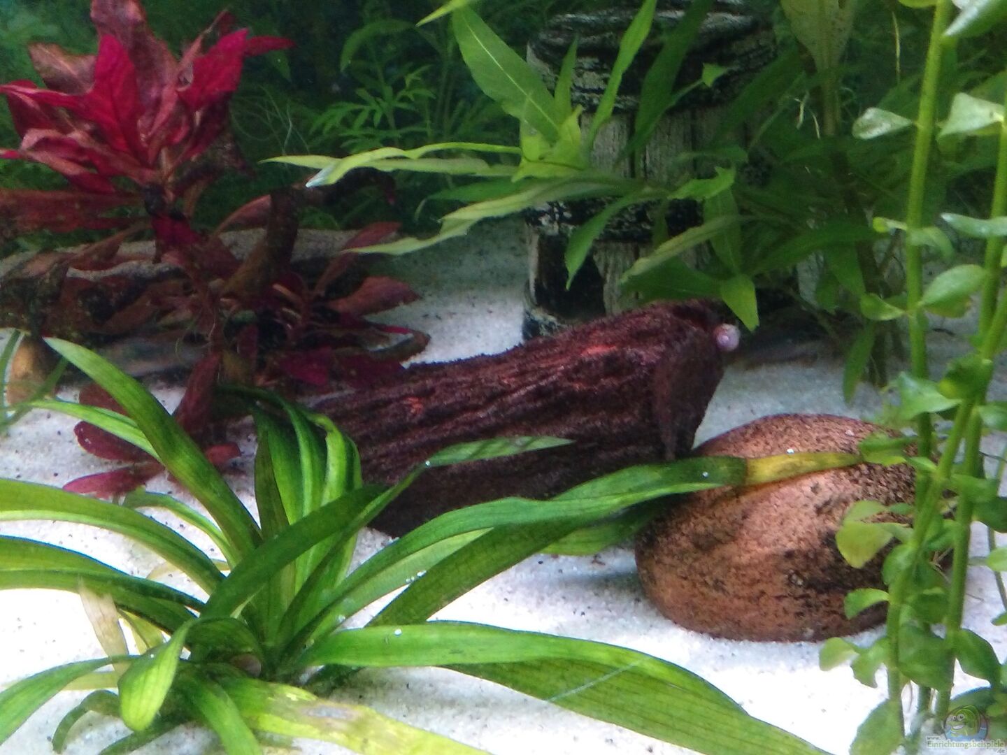 Seit ein paar Wochen eine unbekannte anzahl an Antennen welsen nachwuchs....7 habe ich schon gesehen und gezählt aber ich vermute es sind mehr......Seit 2 Tagen ist Papa wels schon wieder in seiner Höhle und kommt nicht herraus ....auch nicht wenn sein lieblingsfutter Schlangen Gurken Scheiben im Becken sind ausserdem verscheucht er alle fische die der hühle zu nahe kommen....also wird er wohl wieder ein neues gelege haben und bewachen.....mama wels wuselt aber munter im becken herrum
